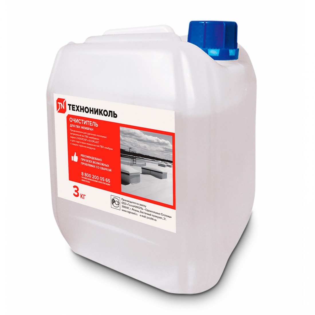 Очиститель для ПВХ Мембран ТехноНиколь 3 кг, шт купить в Сургуте по оптовой цене в интернет магазине СтройПлатформа. Очиститель предназначен для удаления локальных загрязнений на ПВХ мембранах и для подготовки поверхности мембран к сварке. Удаляет загрязнения органического и неорганического происхождения, возникающие при устройстве и эксплуатации полимерной кровли.