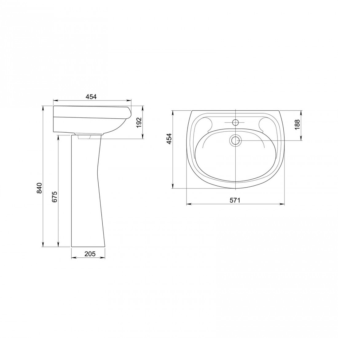 Отверстие под смеситель расположено по центру. Перелив в конструкции не предусмотрен. Благодаря универсальному дизайну и оптимальным габаритам умывальник подходит как для ванных комнат в жилых домах, так и для коммерческого использования.
