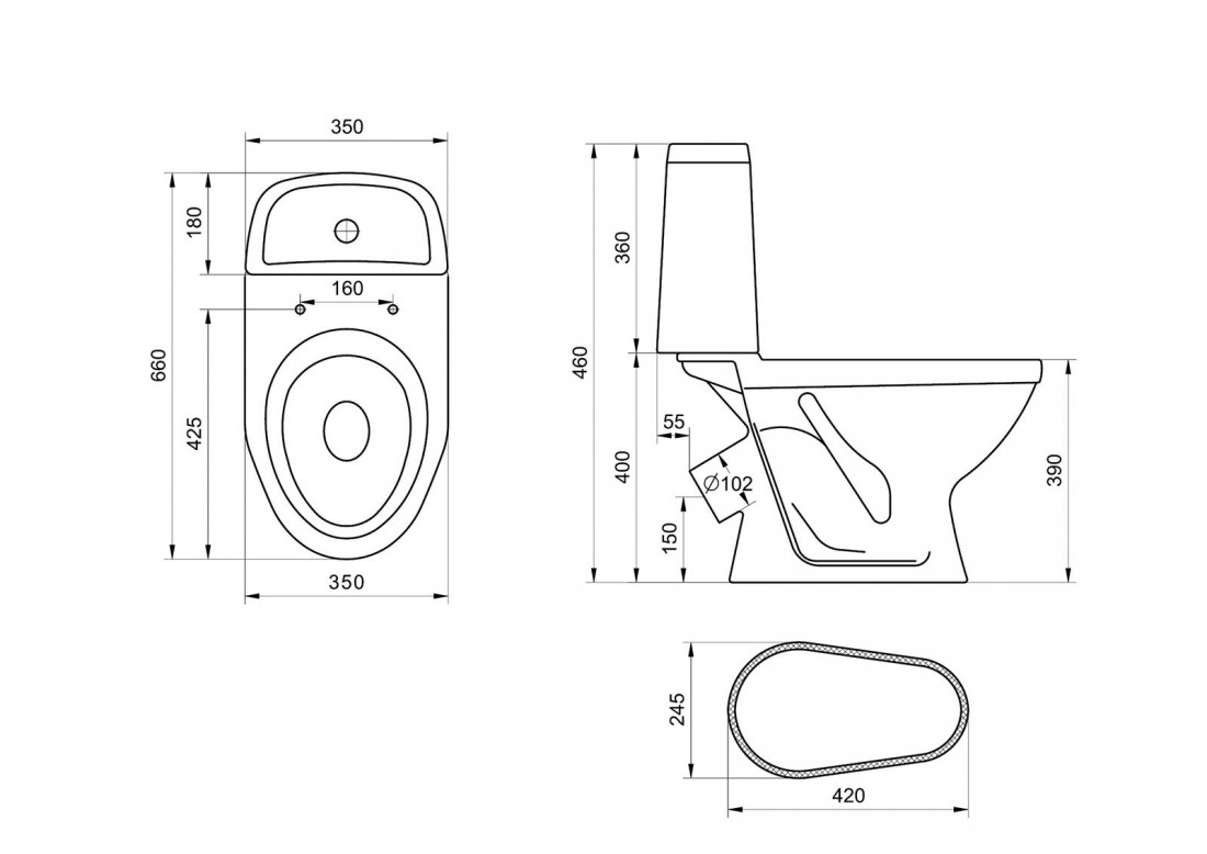 Модель Santeri Прайм — это напольный унитаз с классической овальной формой и надежным механическим сливом. Подходит для систем канализации с косым выпуском. Чаша унитаза оснащена полкой и системой антивсплеск, что делает эксплуатацию более комфортной.