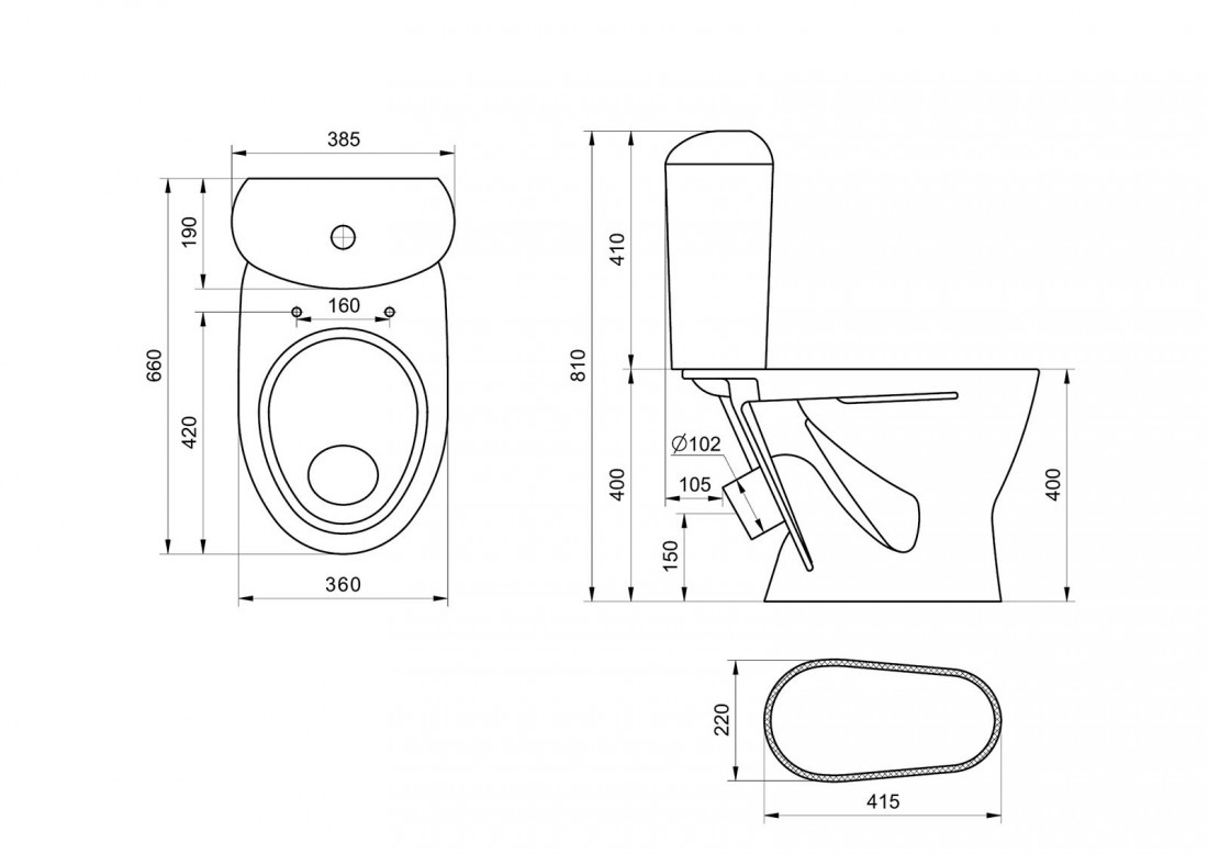 Модель дополнительно оснащена системой антивсплеск, которая улучшает комфорт при эксплуатации. Унитаз комплектуется бачком, установочным набором, кнопкой смыва и сиденьем из полипропилена. Микролифт в сиденье отсутствует.