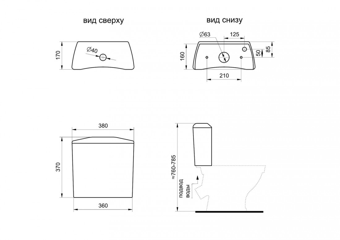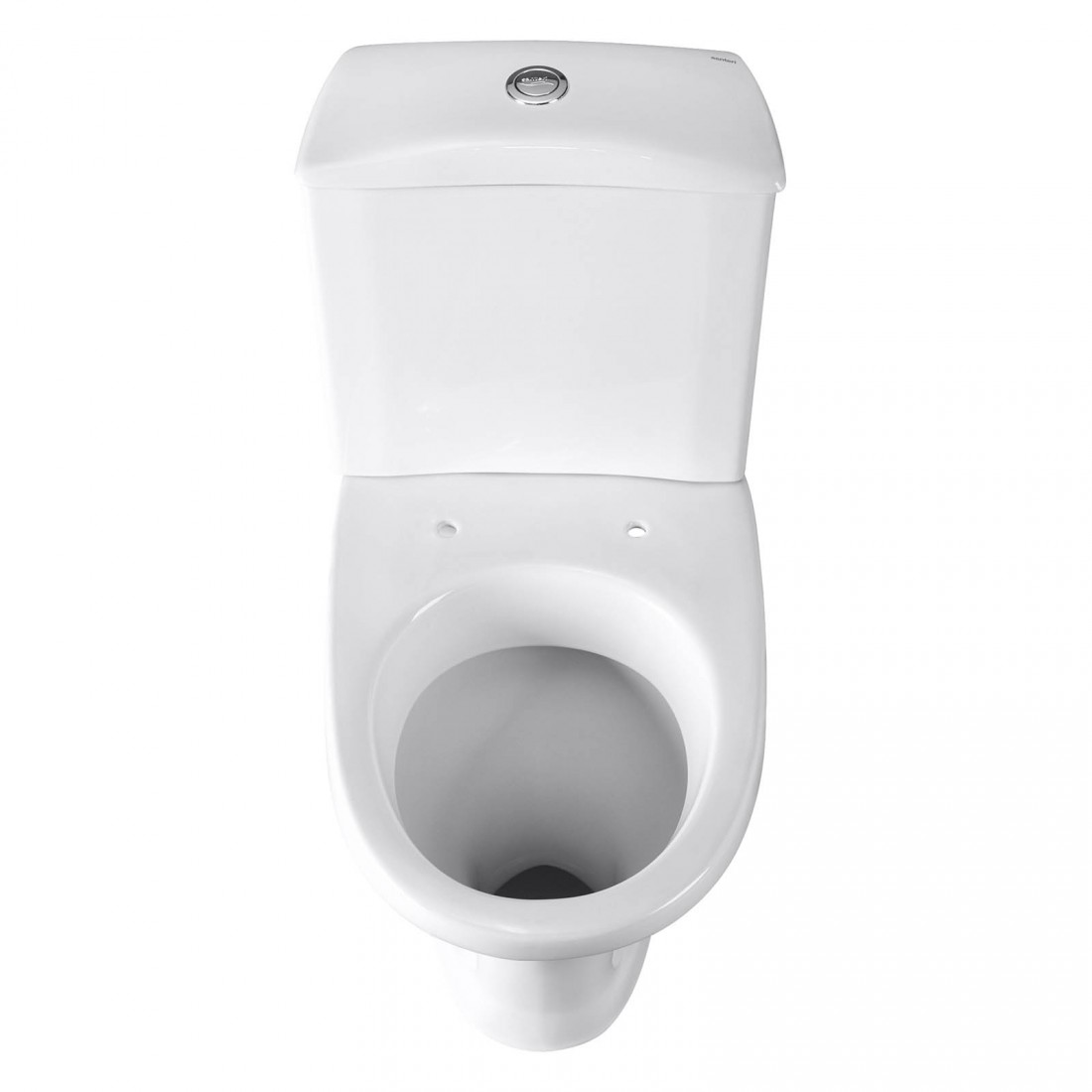 Модель укомплектована всем необходимым для установки и эксплуатации: бачок, кнопка смыва, сиденье из полипропилена. Система микролифта в крышке отсутствует.