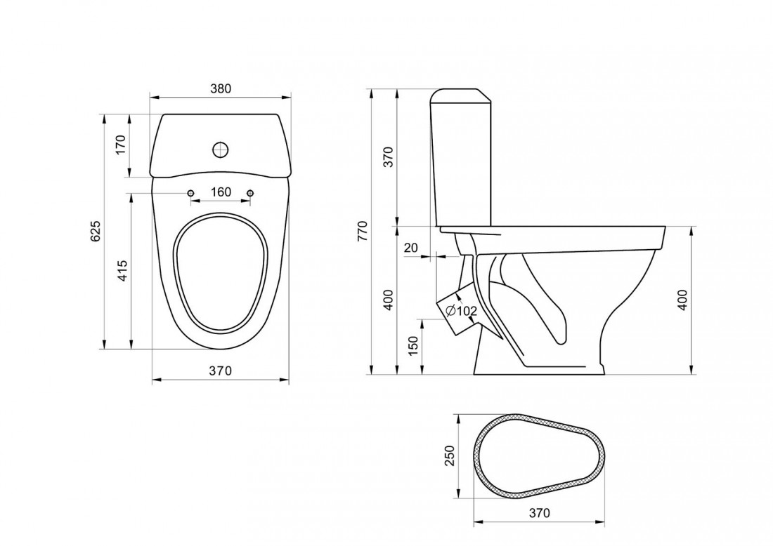 Чаша: овальная, без полки, высота от пола – 400 мм