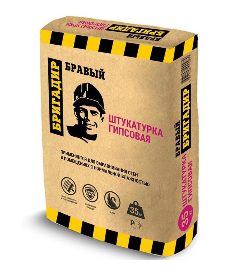 Штукатурка гипсовая Бравый Бригадир 35 кг, шт купить в Сургуте по оптовой цене в интернет магазине СтройПлатформа. Штукатурная смесь для внутренних работ.