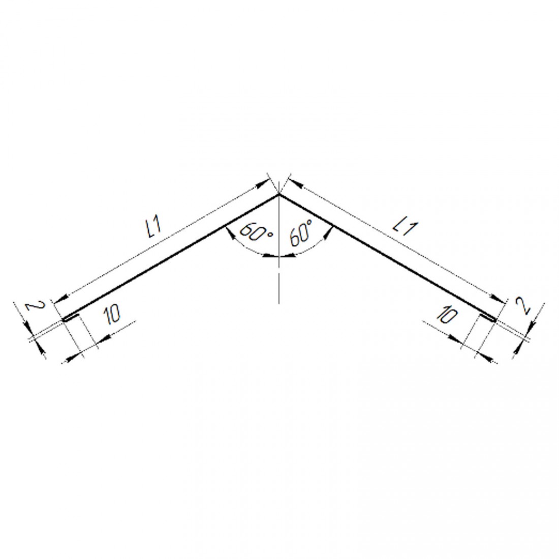 Конек плоский 0,45 мм 150х150х2000 мм ПЭ Ral 8017 шоколад, шт купить в Сургуте по оптовой цене в интернет магазине СтройПлатформа. Доборный элемент металлической кровли при наружной стыковке кровельных элементов.