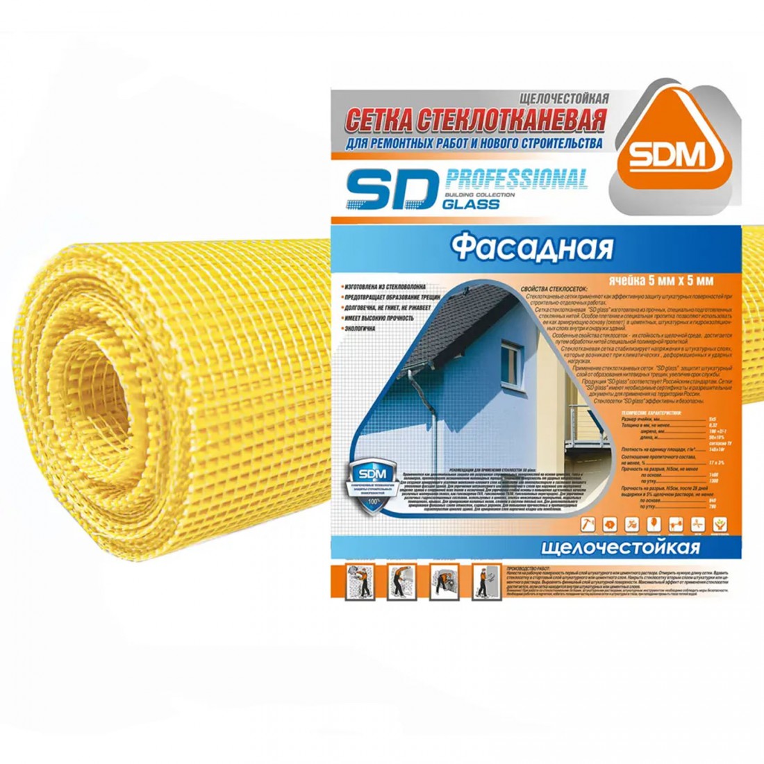Сетка стеклотканевая фасадная SDM SD-Glass Prof, ячейка 5х5 мм, 145 гр/м2, 1х20 м, рул купить в Сургуте по оптовой цене в интернет магазине СтройПлатформа. Фасадная сетка применяется при проведении фасадных штукатурных работ для придания наибольшей прочности штукатурному слою. Благодаря ей внешний слой защищен от образования трещин, которые могут появляться в результате воздействия влажности, перепадов температуры, усадки и других негативных факторов. Фасадная сетка является одним из наиболее надежных способов защиты зданий, так как обладает армирующим эффектом. Она также часто применяется при проведении работ по гидроизоляции зданий и в системе наливных полов и внешнего утепления, так как выполняет роль так называемого «несущего скелета». Фасадная стеклосетка берет на себя возникающие деформационные напряжения и гарантирует долгосрочную защиту от появления трещин.