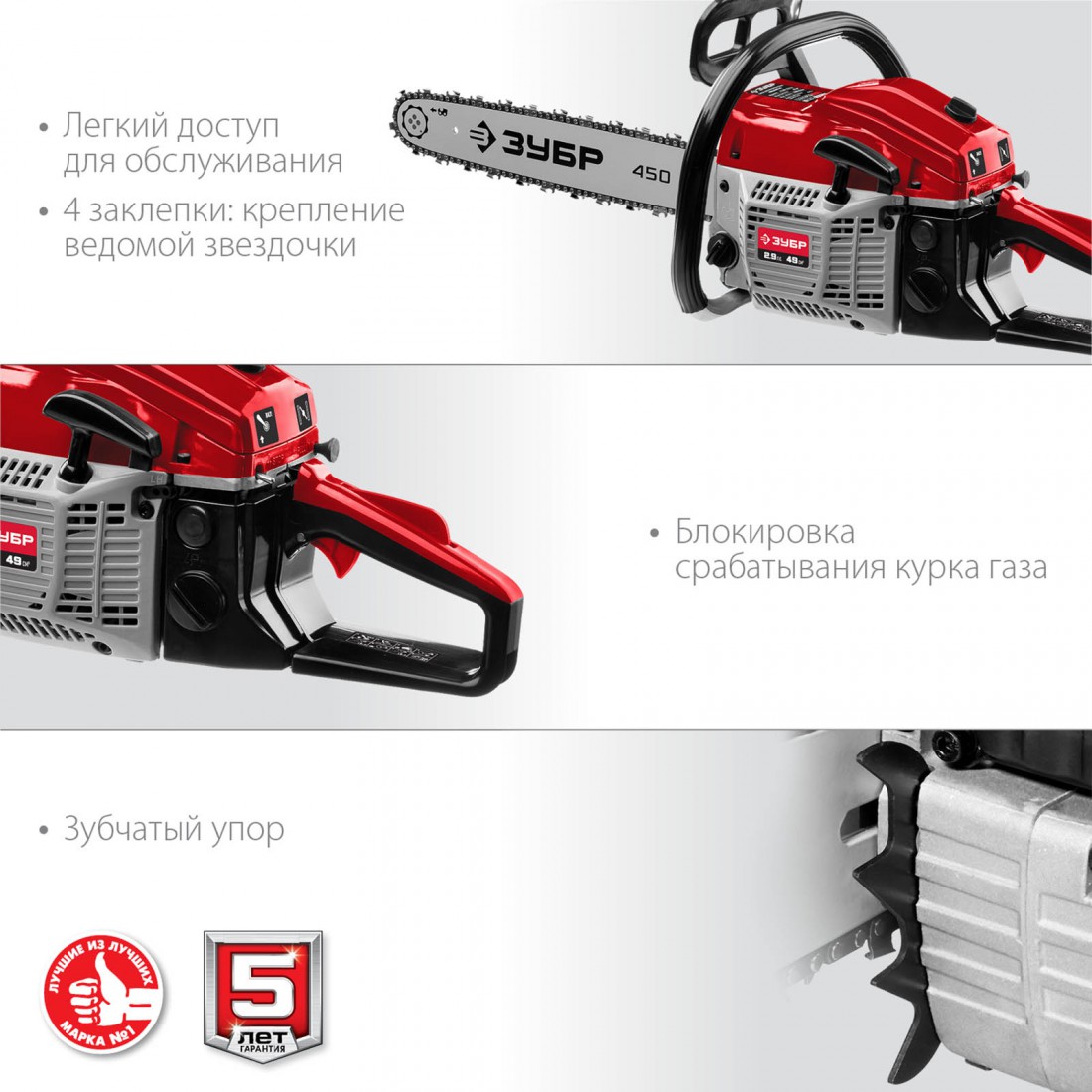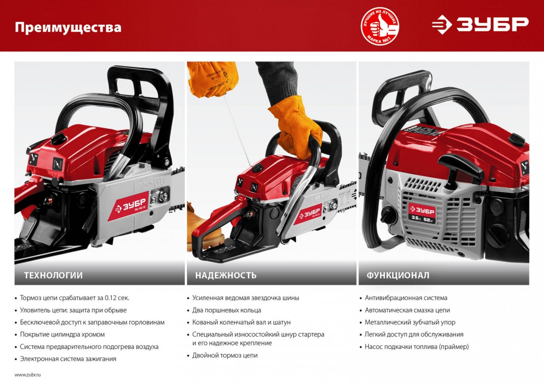 Бензиновая пила ЗУБР – это надежный инструмент для работы с деревом на дачном участке или в лесу. Она идеально подходит для распила досок, бруса, стволов деревьев различных пород. В отличие от электрических моделей, бензиновая пила оснащена мощным двигателем, что позволяет использовать ее в любых условиях – независимо от погоды и наличия электросети. Благодаря отсутствию электрического привода, пила безопасна в использовании и не требует подключения к сети.