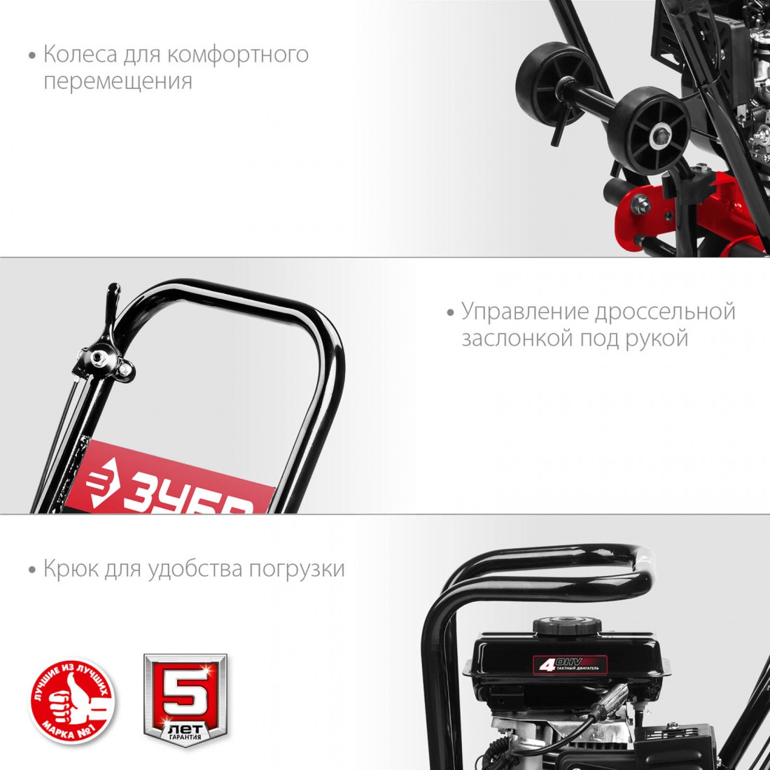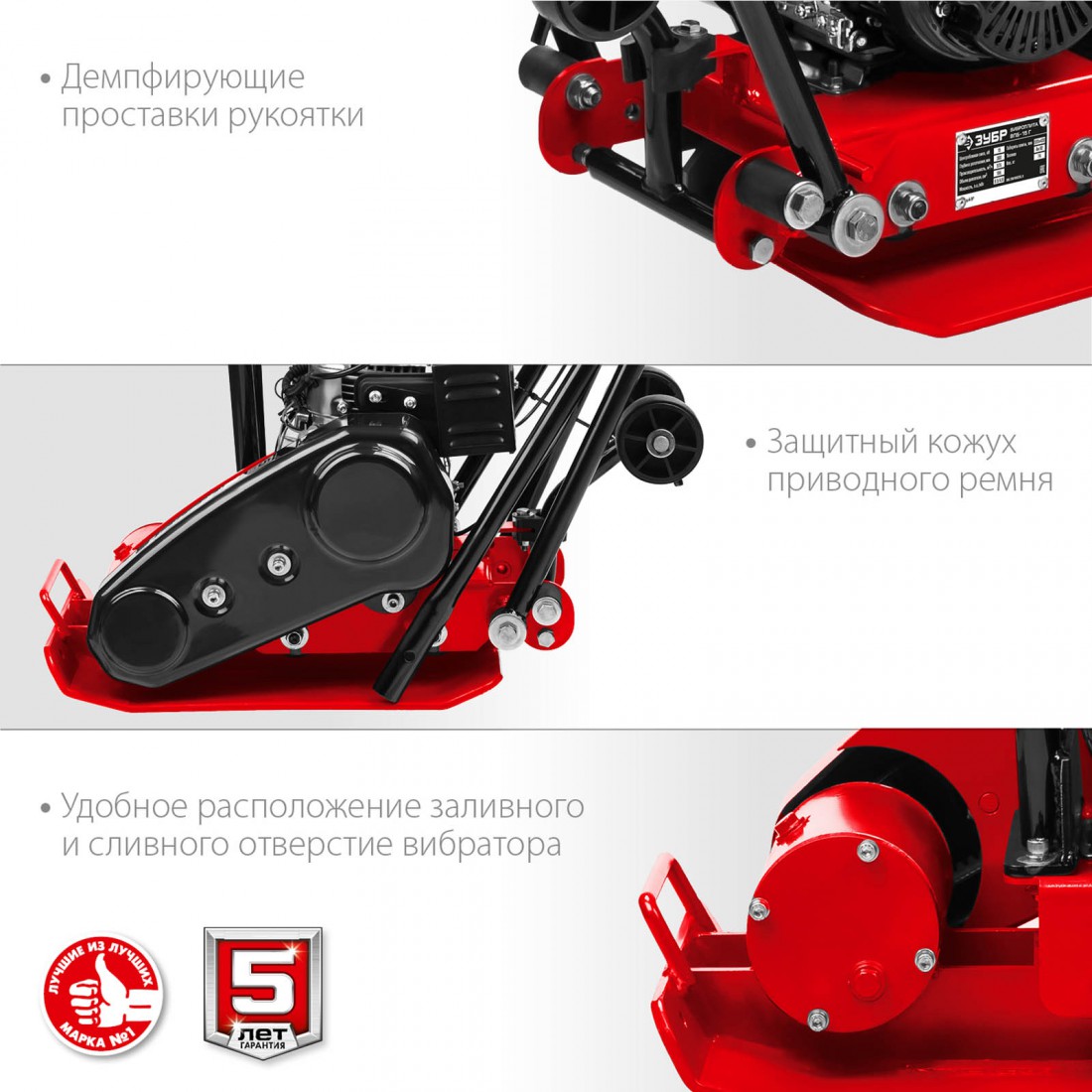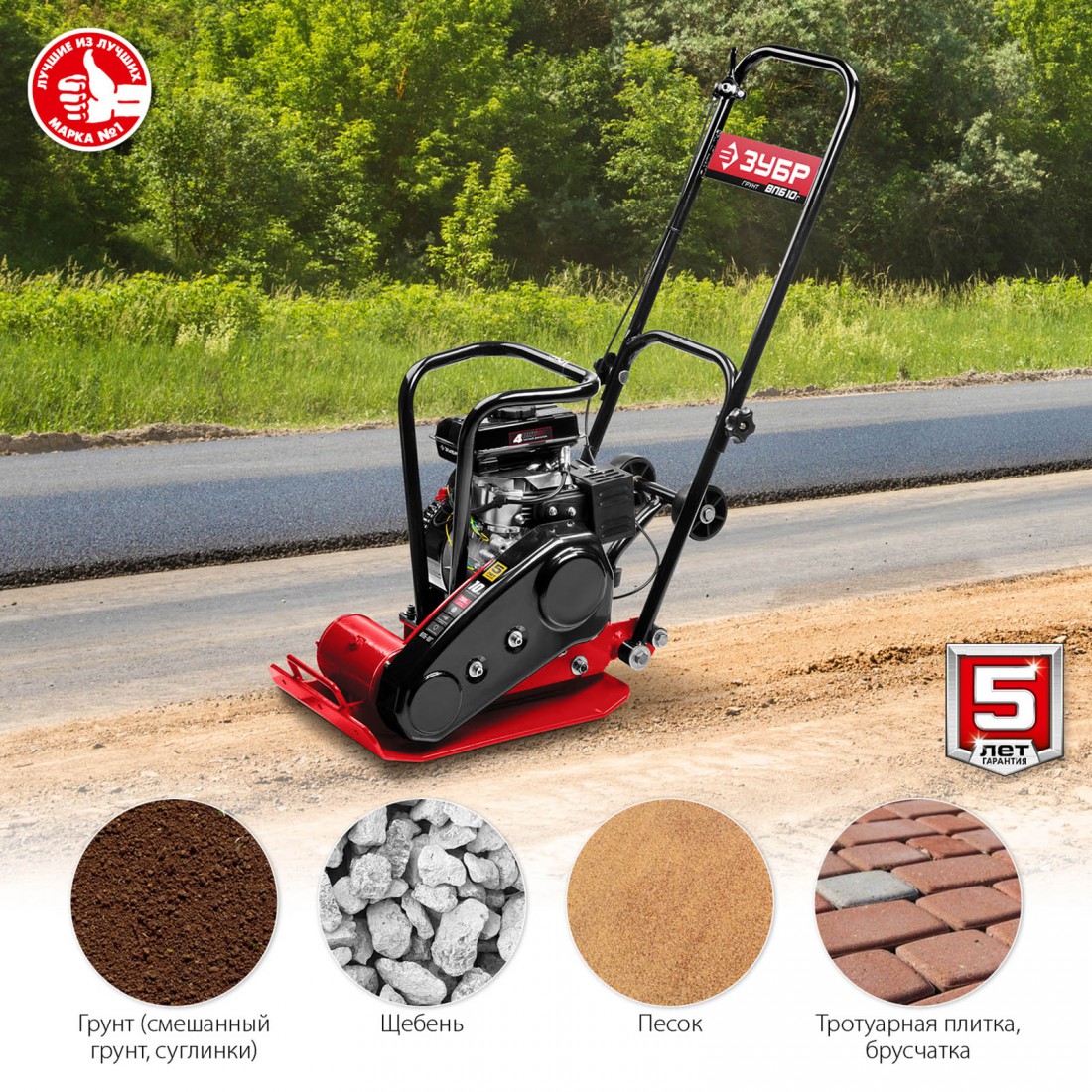 Виброплита предназначена для уплотнения бетонных, асфальтовых и сыпучих материалов, а также для формирования уплотненных поверхностей. Компактная конструкция позволяет осуществлять уплотнение смешанного грунта в самых узких местах, даже в очень узких траншеях. Направляющая рукоятка с виброзащитой позволяет увеличить количество часов непрерывной работы и снизить усталость для оператора. Четырехтактный двигатель ″ЗУБР″ обеспечит беспроблемную эксплуатацию при минимальном сервисном обслуживании на весь срок использования.