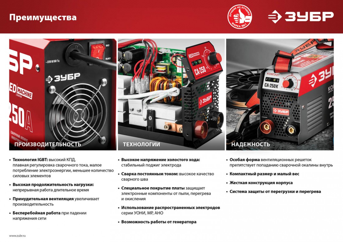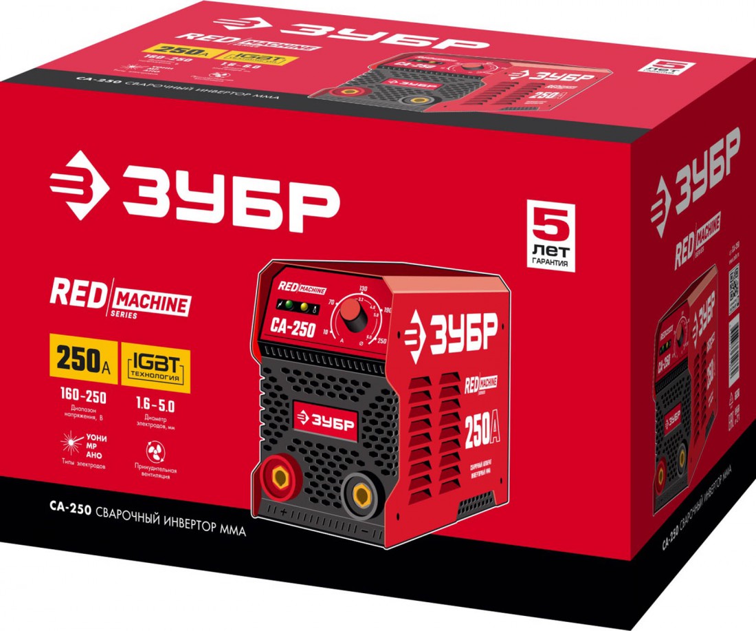 Инверторный сварочный аппарат Зубр 250 А Red Machine, СА-250 купить в Сургуте по оптовой цене в интернет магазине СтройПлатформа.