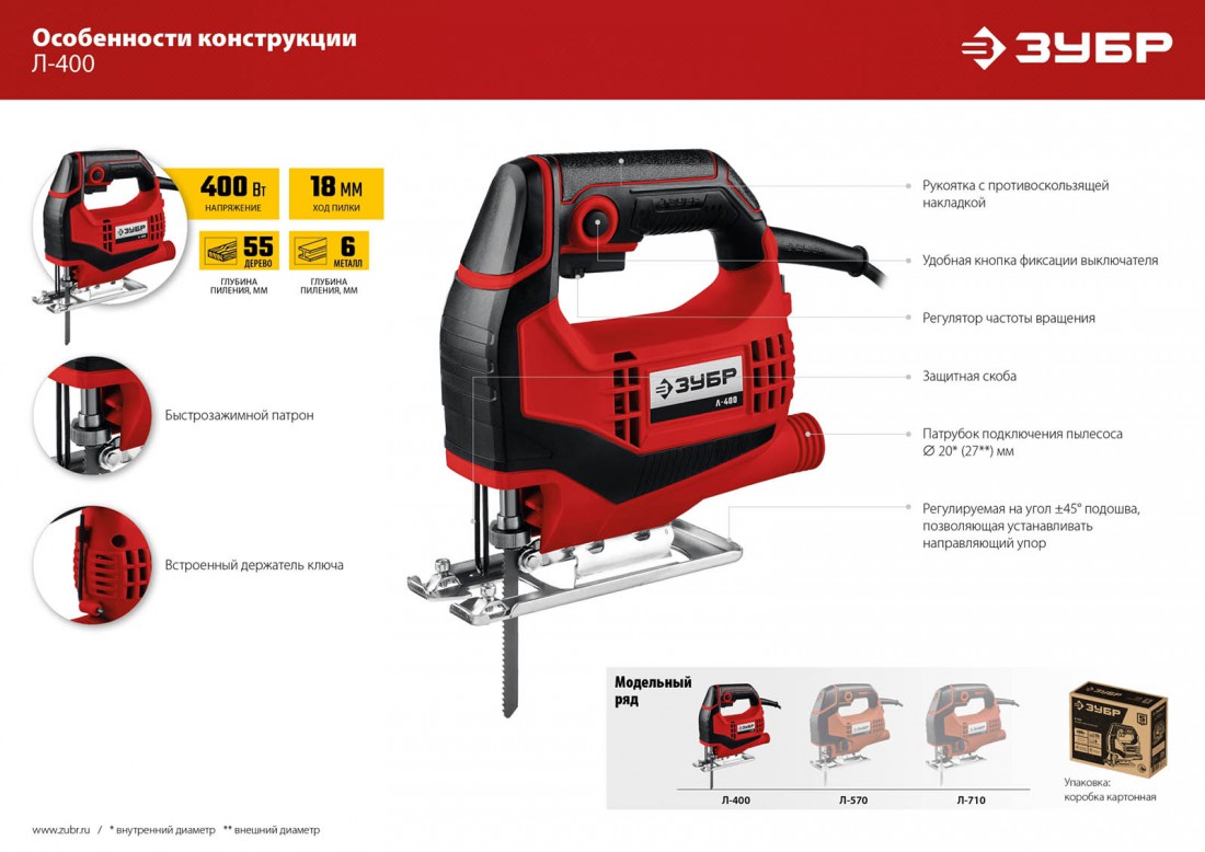 Лобзик электрический Зубр 400 Вт Л-400 купить в Сургуте по оптовой цене в интернет магазине СтройПлатформа.