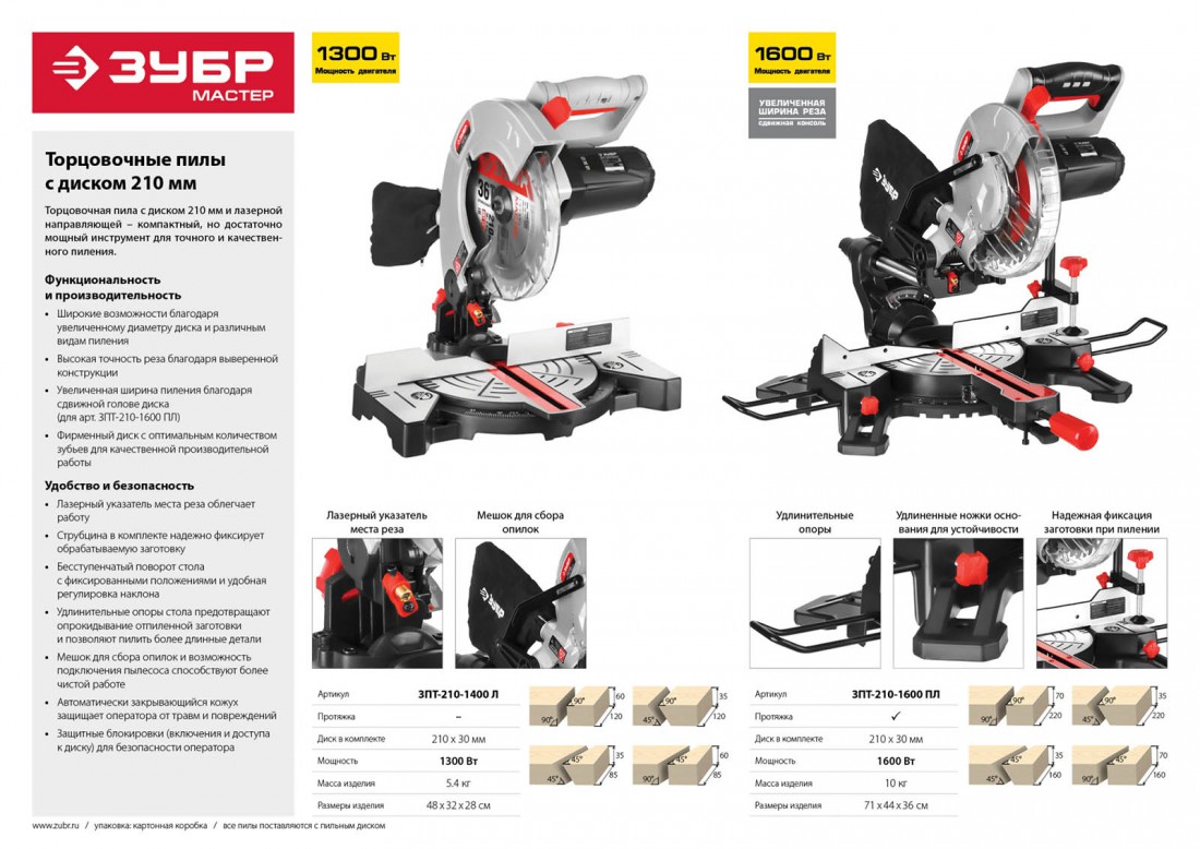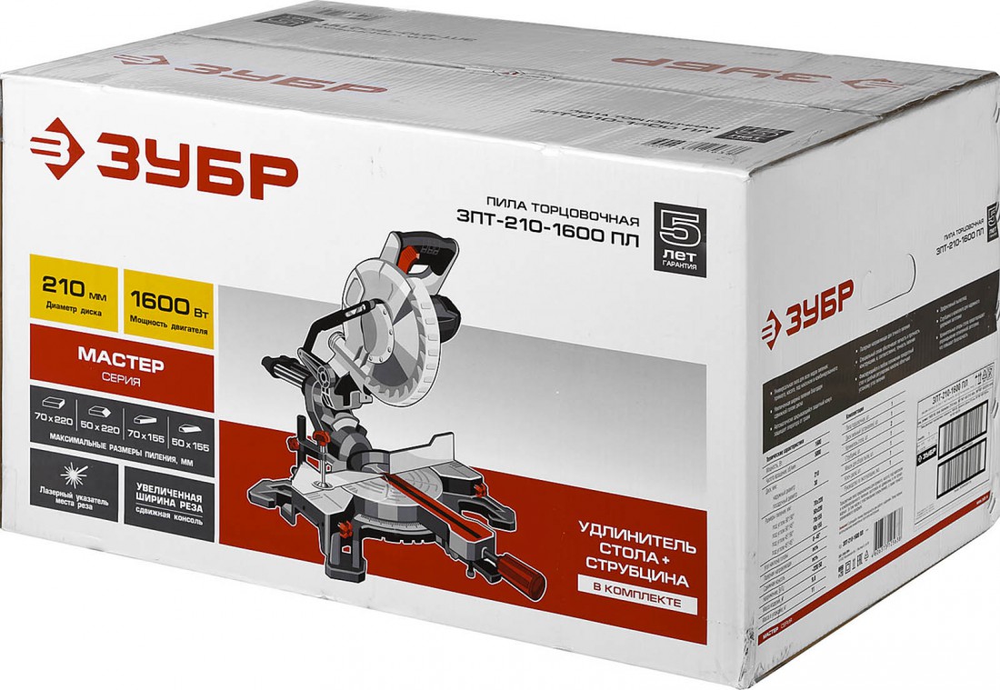 Пила торцовочная с протяжкой Зубр 1600 Вт ЗПТ-210-1600 ПЛ купить в Сургуте по оптовой цене в интернет магазине СтройПлатформа. Торцовочная пила с подвижной головой и лазерной направляющей