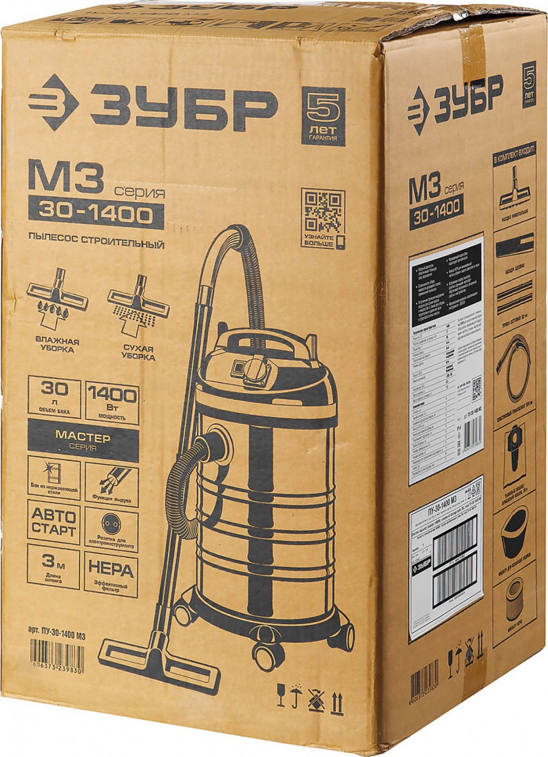 Пылесос строительный Зубр 1400 Вт 30 л ПУ-30-1400 М3 купить в Сургуте по оптовой цене в интернет магазине СтройПлатформа.