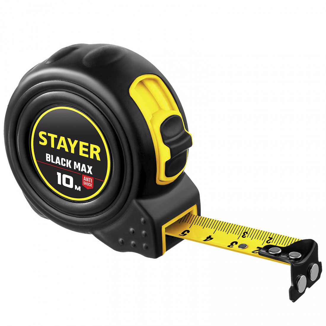 Рулетка 10м BlackMax Stayer ударостойкий обрезиненный корпус, шт купить в Сургуте по оптовой цене в интернет магазине СтройПлатформа.