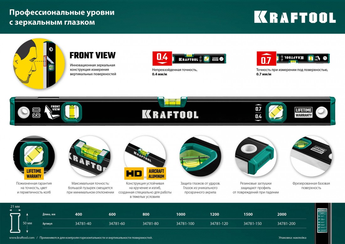 Уровень строительный Kraftool 60 см, 3 ампулы, с зеркальным глазком, шт купить в Сургуте по оптовой цене в интернет магазине СтройПлатформа.