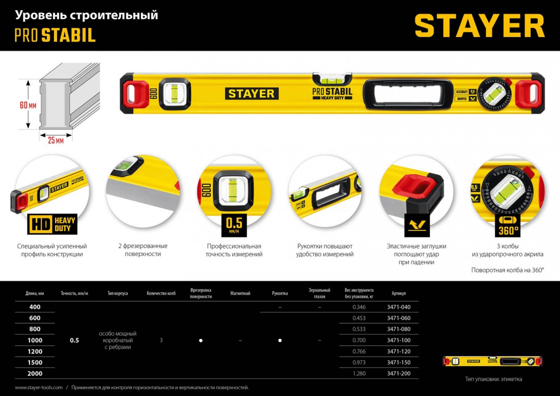 Уровень строительный Stayer Pro Stabil усиленный 60 см, 3 ампулы, с поворотным глазком, шт купить в Сургуте по оптовой цене в интернет магазине СтройПлатформа.