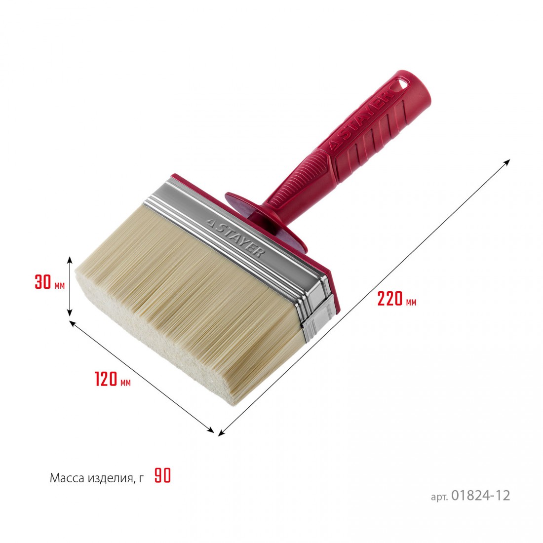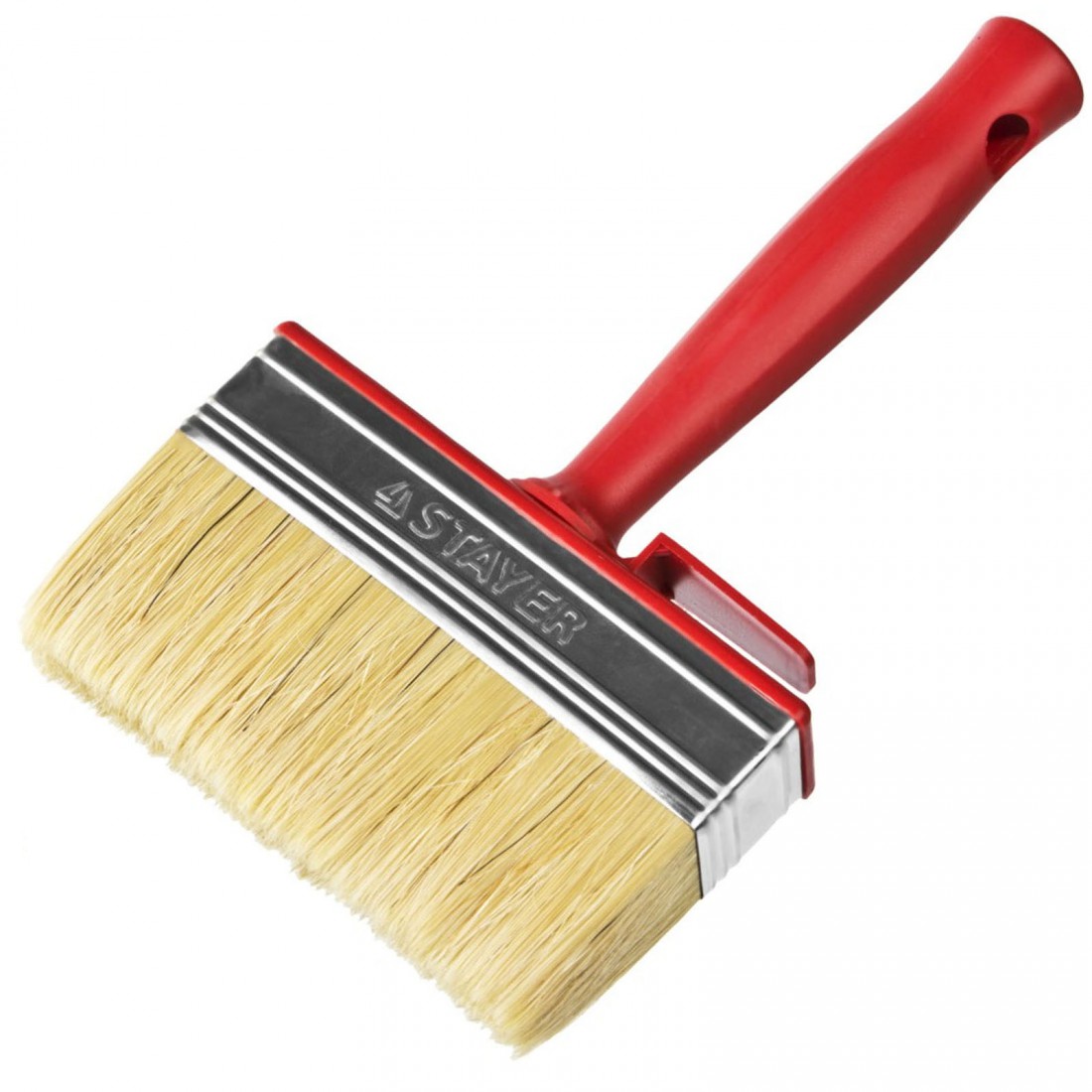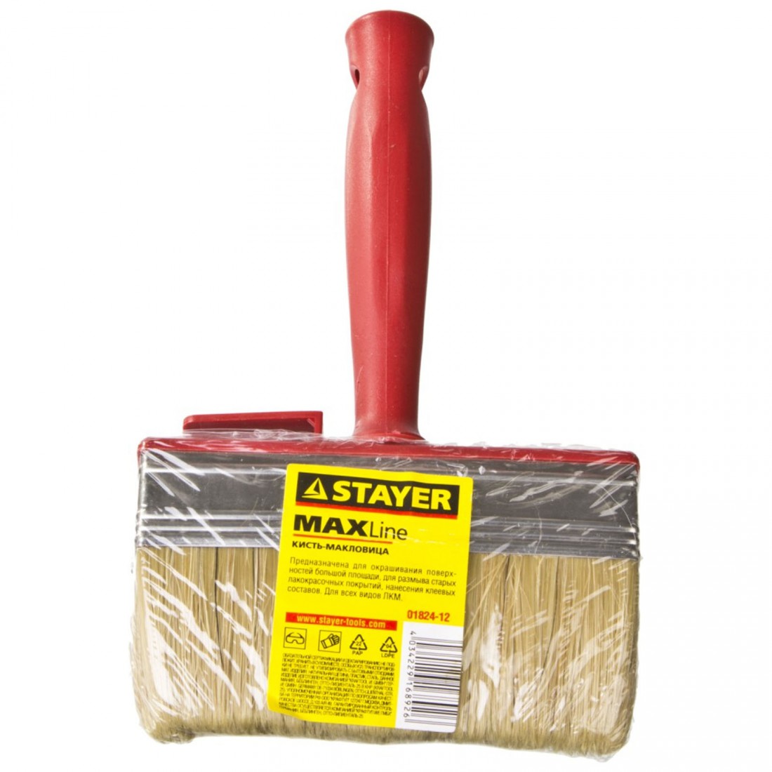 Кисть макловица 120х30 мм искусственная щетина Stayer Universal, шт купить в Сургуте по оптовой цене в интернет магазине СтройПлатформа. Отличное решение для работы со всеми типами ЛКМ, а так же грунтовки, побелки на большие поверхности, клеевых составов на обои, размывки потолков. Щетина кисти надежно закреплена бандажом из никелированной стали, а наличие удобной пластмассовой рукоятки обеспечит комфортную работу