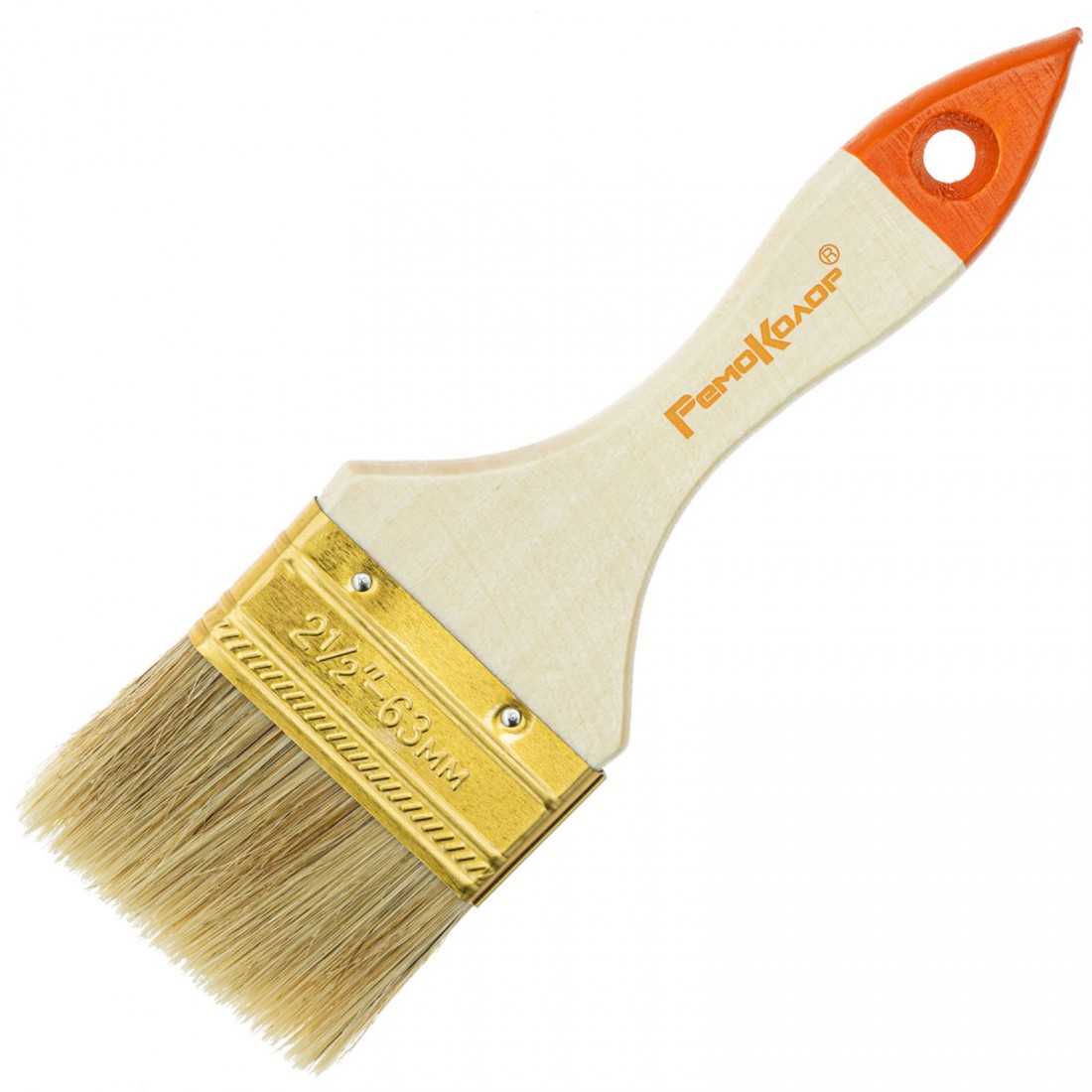 Кисть плоская 63 мм натуральная щетина РемоКолор Стандарт Универсал, шт купить в Сургуте по оптовой цене в интернет магазине СтройПлатформа. Кисть плоская 63 мм с натуральной щетиной РемоКолор Стандарт Универсал — это универсальный инструмент для работы с любыми видами лакокрасочных материалов, особенно эффективный при использовании масляных, алкидных красок, эмалей и лаков. Натуральная светлая щетина с расщепленными кончиками обеспечивает отличное впитывание и равномерное нанесение краски, что гарантирует качественный финиш.