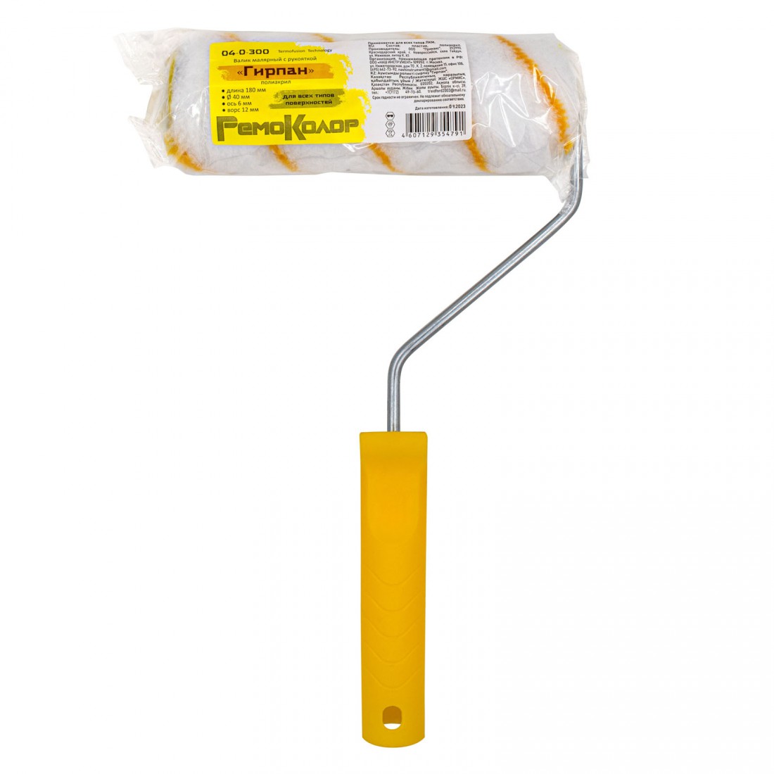 Валик малярный полиакрил 180 мм, D40 мм, ворс 12 мм, ось 6 мм, РемоКолор Гирпан, шт купить в Сургуте по оптовой цене в интернет магазине СтройПлатформа. Валик "Гирпан" от РемоКолор с полиакриловой шубкой и длиной ворса 12 мм идеально подходит для выполнения малярных работ на различных поверхностях. В комплект входит ручка диаметром 6 мм и ролик размером 180 х 40 мм. Полиакриловая шубка обеспечивает равномерное нанесение краски и не оставляет следов благодаря бесшовной структуре и тщательно обработанным краям валика.