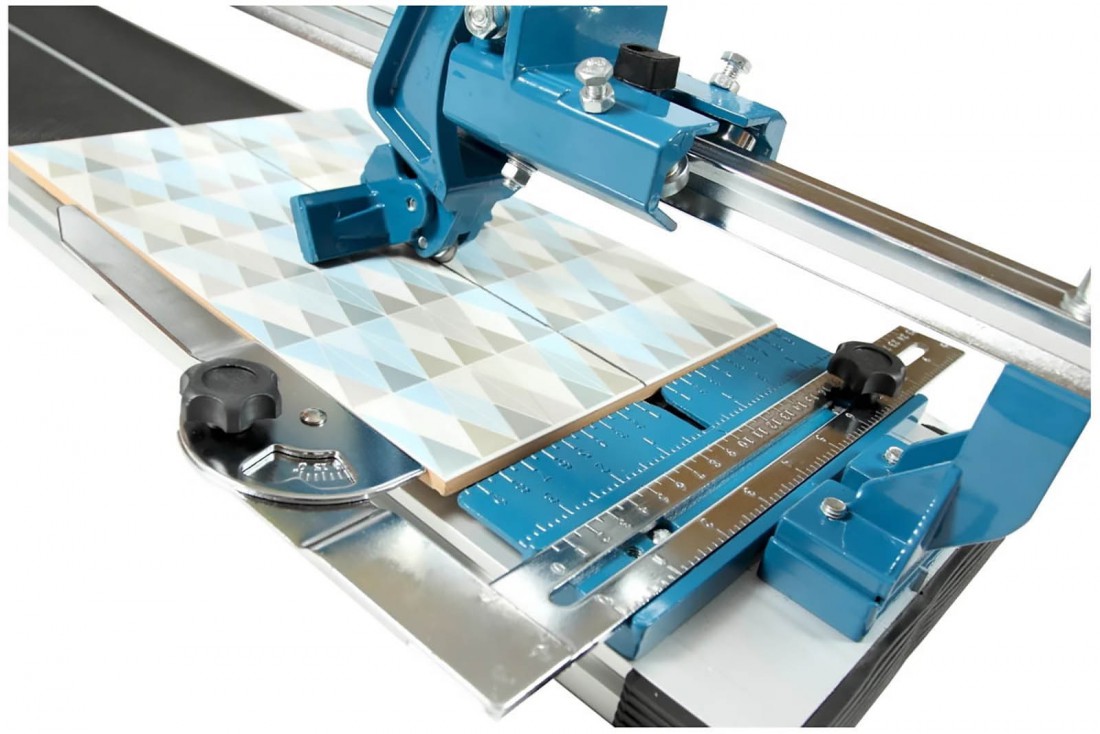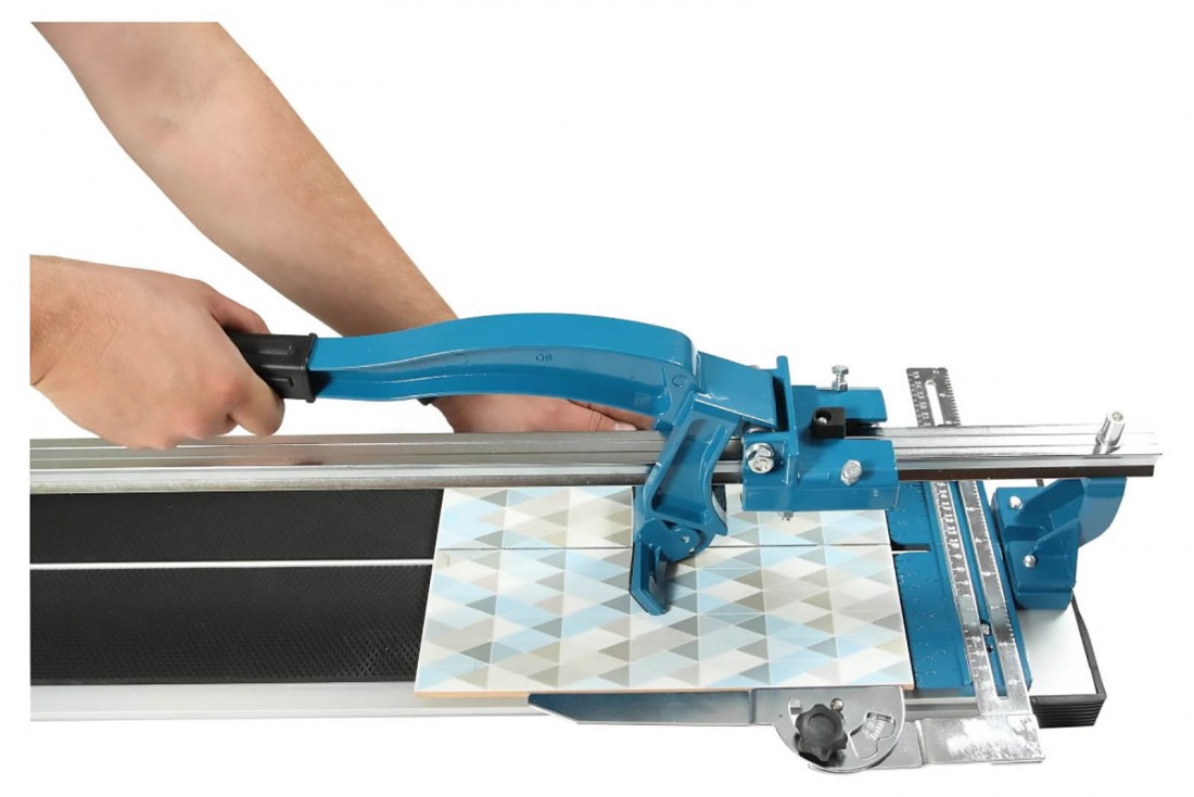 Плиткорез предназначен для точной резки керамической плитки длиной до 900 мм и толщиной до 16 мм. Основание из литого алюминиевого сплава с обрезиненной рабочей поверхностью обеспечивает устойчивость инструмента и предотвращает смещение материала при работе.