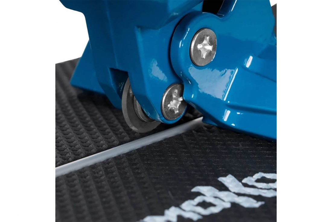 Направляющая – монорельс из хромированной стали с антикоррозионным покрытием – гарантирует плавное движение каретки без заеданий. Ходовая часть на 6 подшипниках исключает люфты, а режущий ролик (арт. 46-1-022) размером 22 х 10,5 х 2 мм, выполненный из карбида вольфрама ВК8, обеспечивает аккуратный и чистый рез.