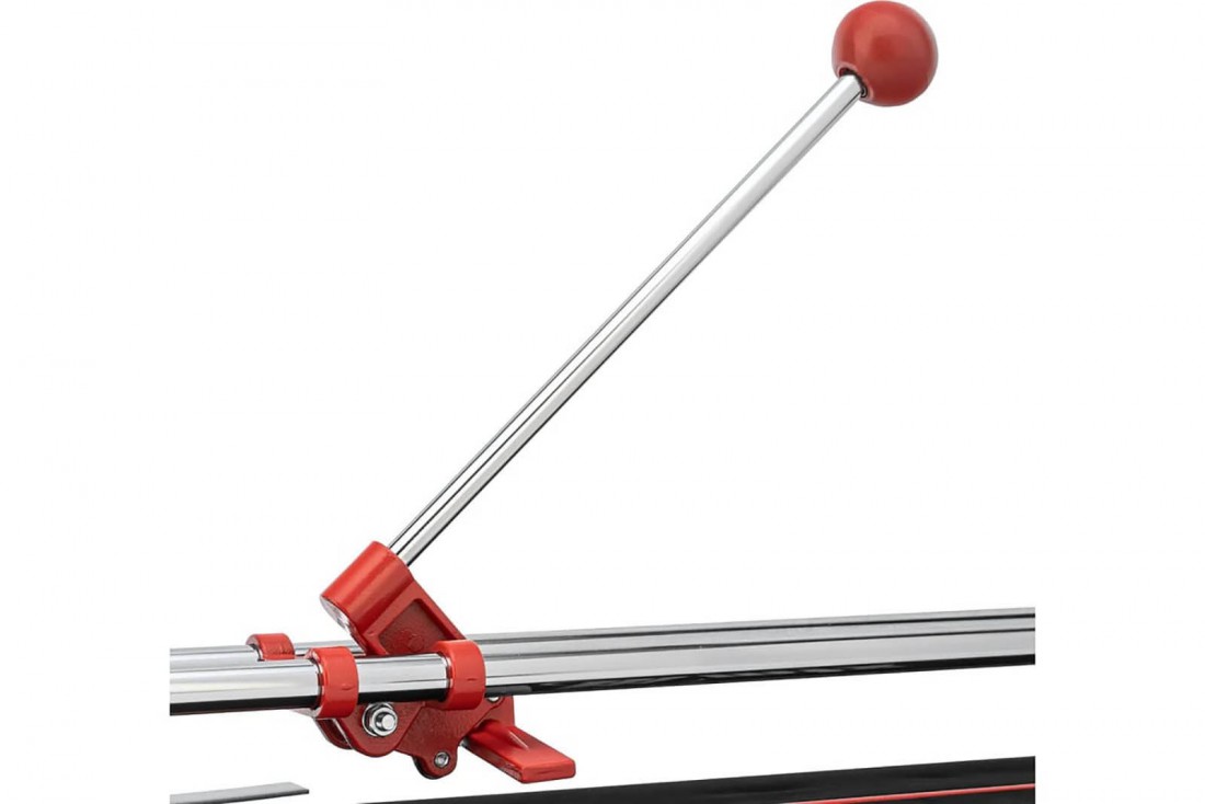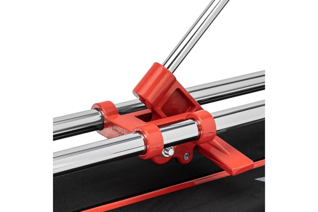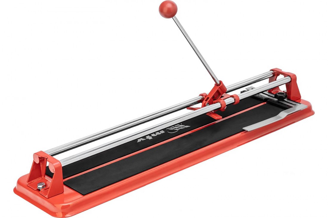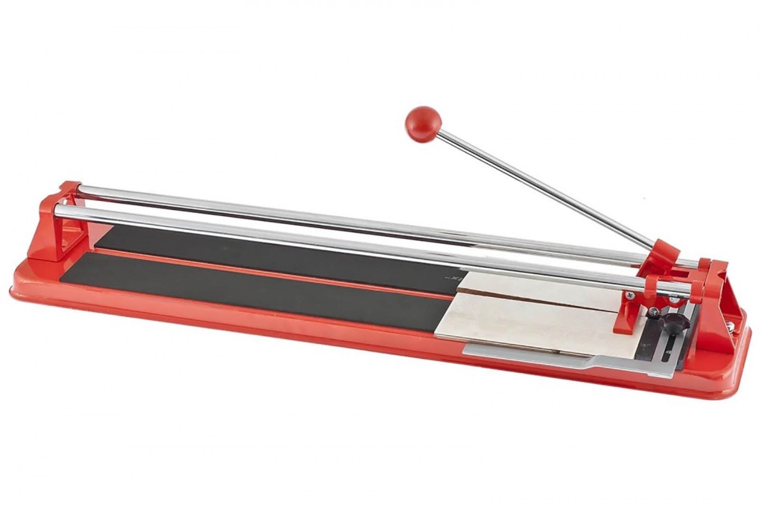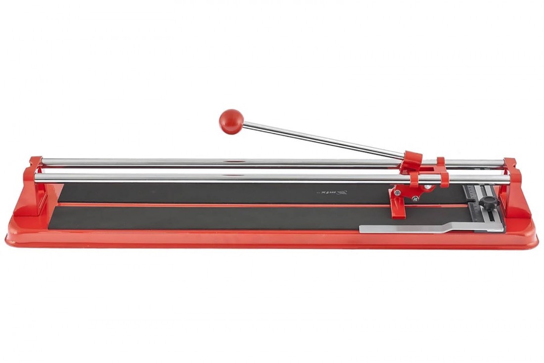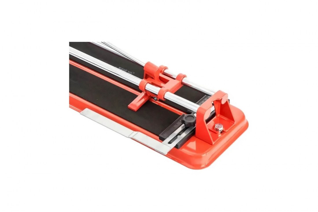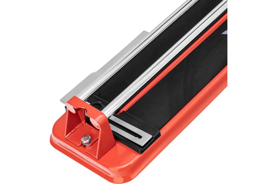 Основание плиткореза выполнено из стали, что повышает его устойчивость, а амортизирующие накладки предотвращают смещение плитки. Для удобства эксплуатации предусмотрены отверстия для фиксации инструмента на рабочей поверхности. Эргономичная рукоятка с удобным захватом снижает нагрузку на руки во время работы.
