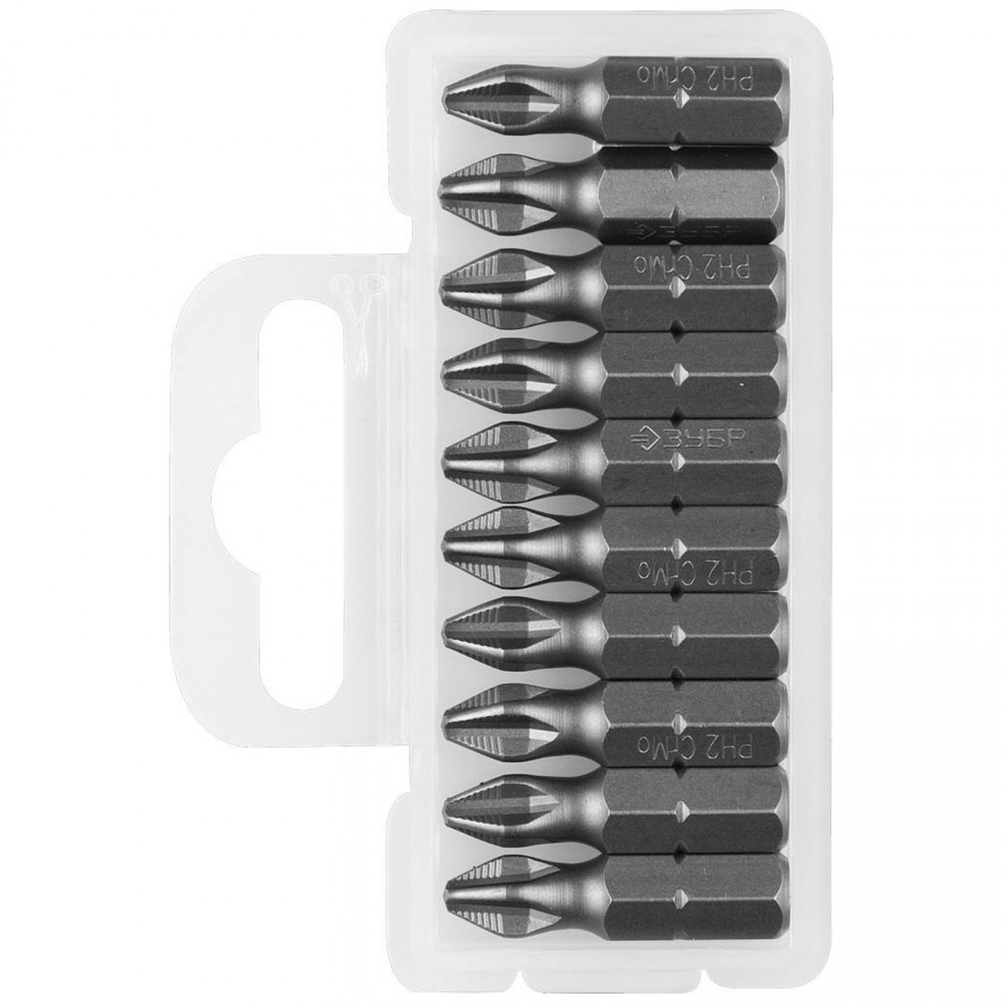 Биты РН2 25 мм кованые ЗУБР, 10 шт/упак купить в Сургуте по оптовой цене в интернет магазине СтройПлатформа. Биты PH2 25 мм кованые ЗУБР, 10 шт/упак – прочный и надежный инструмент для профессионального использования. Изготовлены из хромомолибденовой стали S2 методом ковки, что гарантирует долговечность и устойчивость к нагрузкам.
