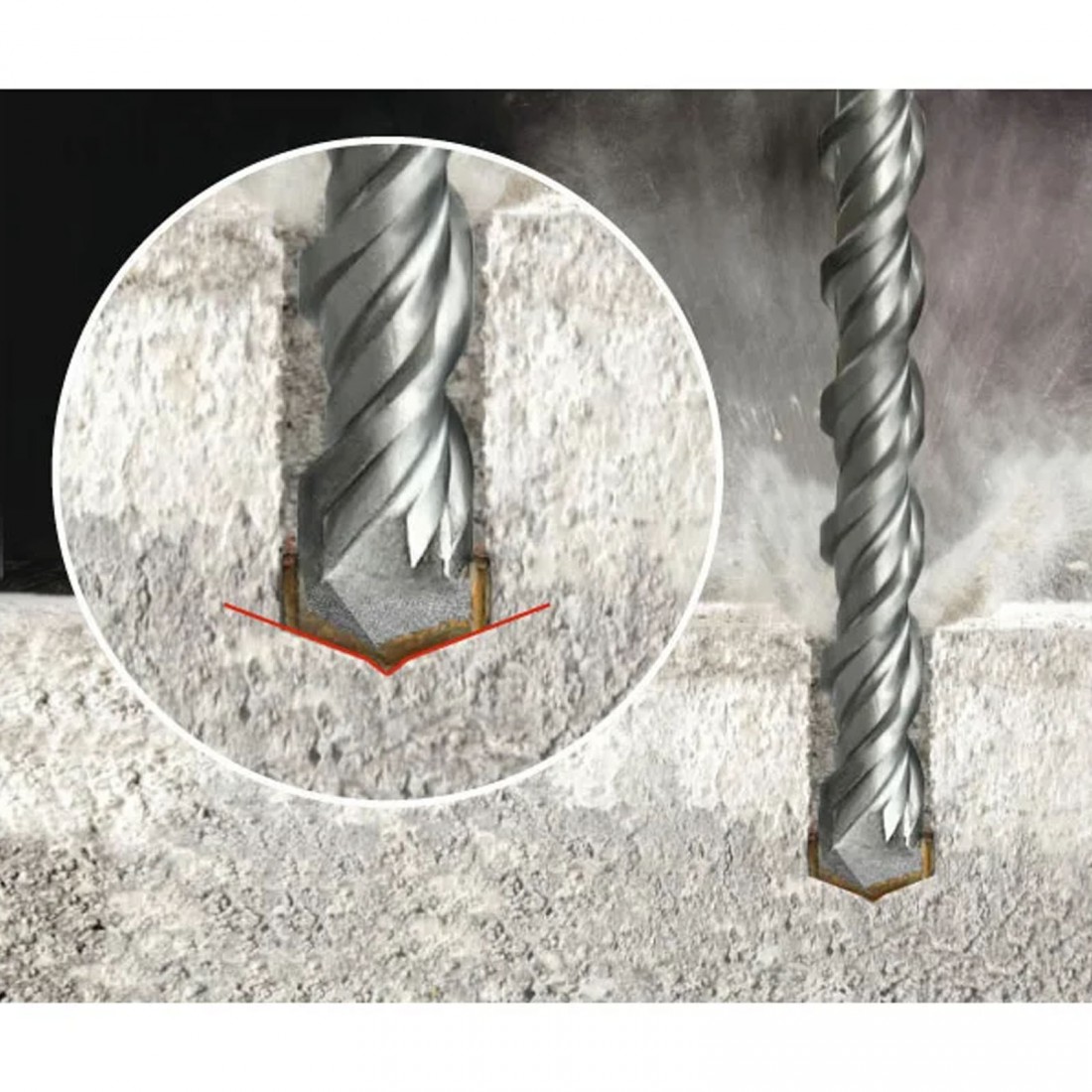 Твердосплавная пластина на качественном припое обеспечивает высокие производительные характеристики. Двойная спираль способствует быстрому отводу сверлильной пыли, что снижает трение и благоприятно влияет на общий ресурс. Тело бура из высококачественной инструментальной стали выдерживает высокие нагрузки и позволяет просверлить большое количество отверстий. Режущая пластина V-образной формы способствует более точному и эффективному засверливанию.