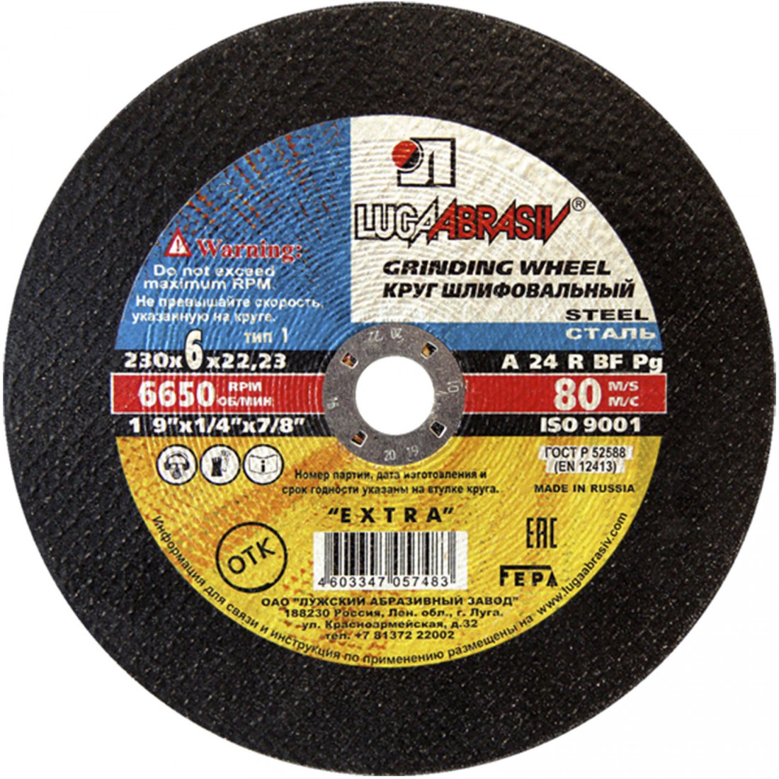 Диск шлифовальный по металлу Extra 230х6х22 мм Луга применяется для зачистки деталей и конструкций широкой гаммы сталей. Предназначен для зачистка сварных и угловых швов, снятие фаски и т.п.