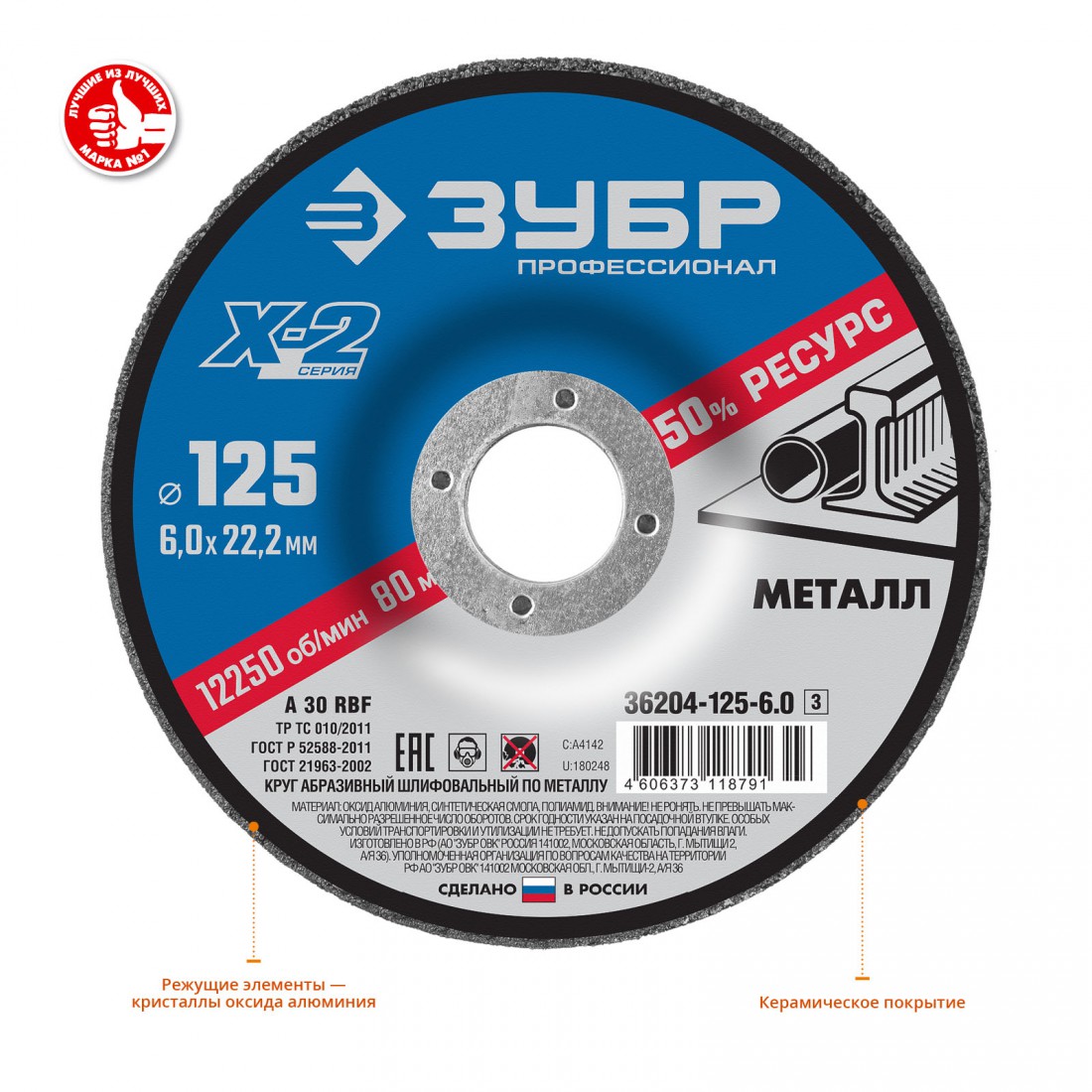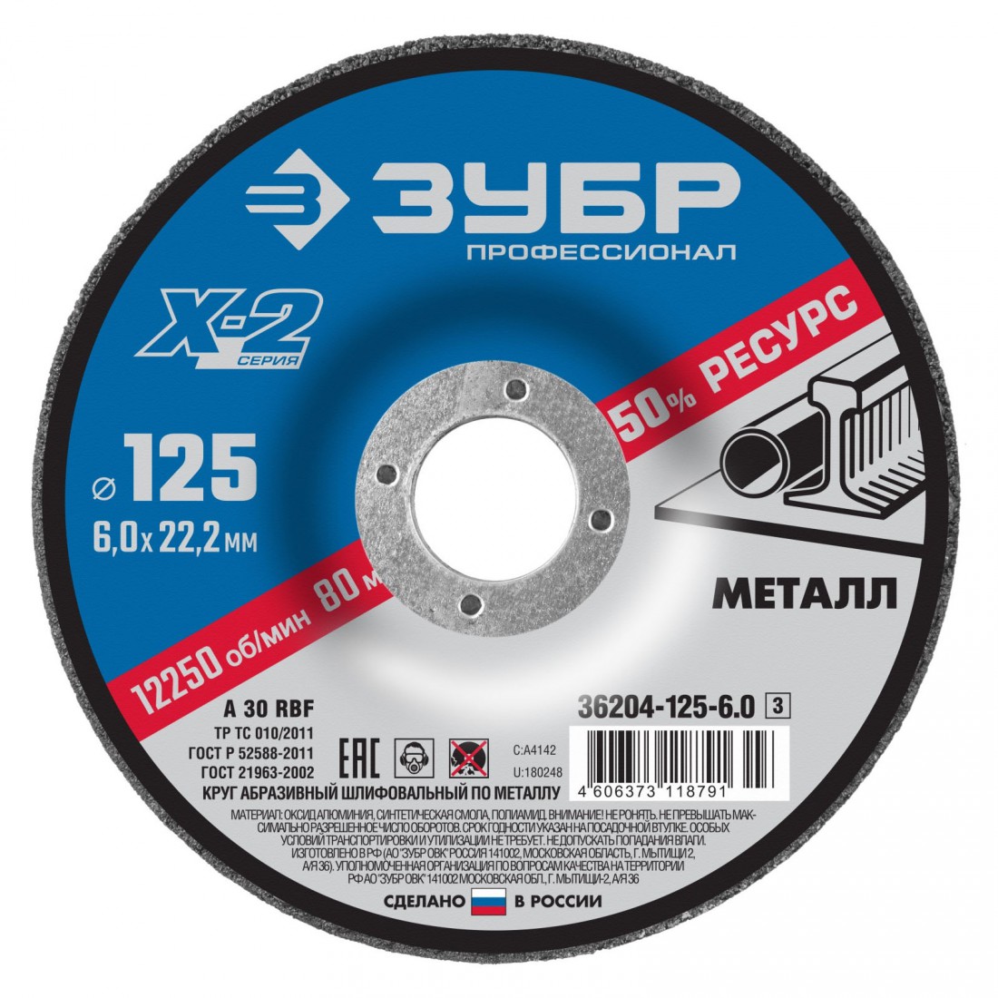 Диск шлифовальный по металлу 125х6х22,2 мм Зубр X-2 Профессионал, шт купить в Сургуте по оптовой цене в интернет магазине СтройПлатформа.