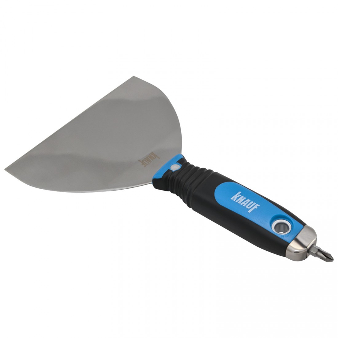 Шпатель с отверткой Кнауф 150 мм, шт купить в Сургуте по оптовой цене в интернет магазине СтройПлатформа. Шпатель шириной 150 мм с пластиковой рукоятью и встроенным битком. Шпатель для шпаклевочных работ с насадкой Ph2 в рукоятке для докручивания шурупов. Применяется в основном для процесса заполнения швов шпаклевочным раствором и выравнивания его в плоскости и/или вмораживания армирующей ленты. Удобная, сбалансированная рукоять для уменьшения нагрузки на запястье.