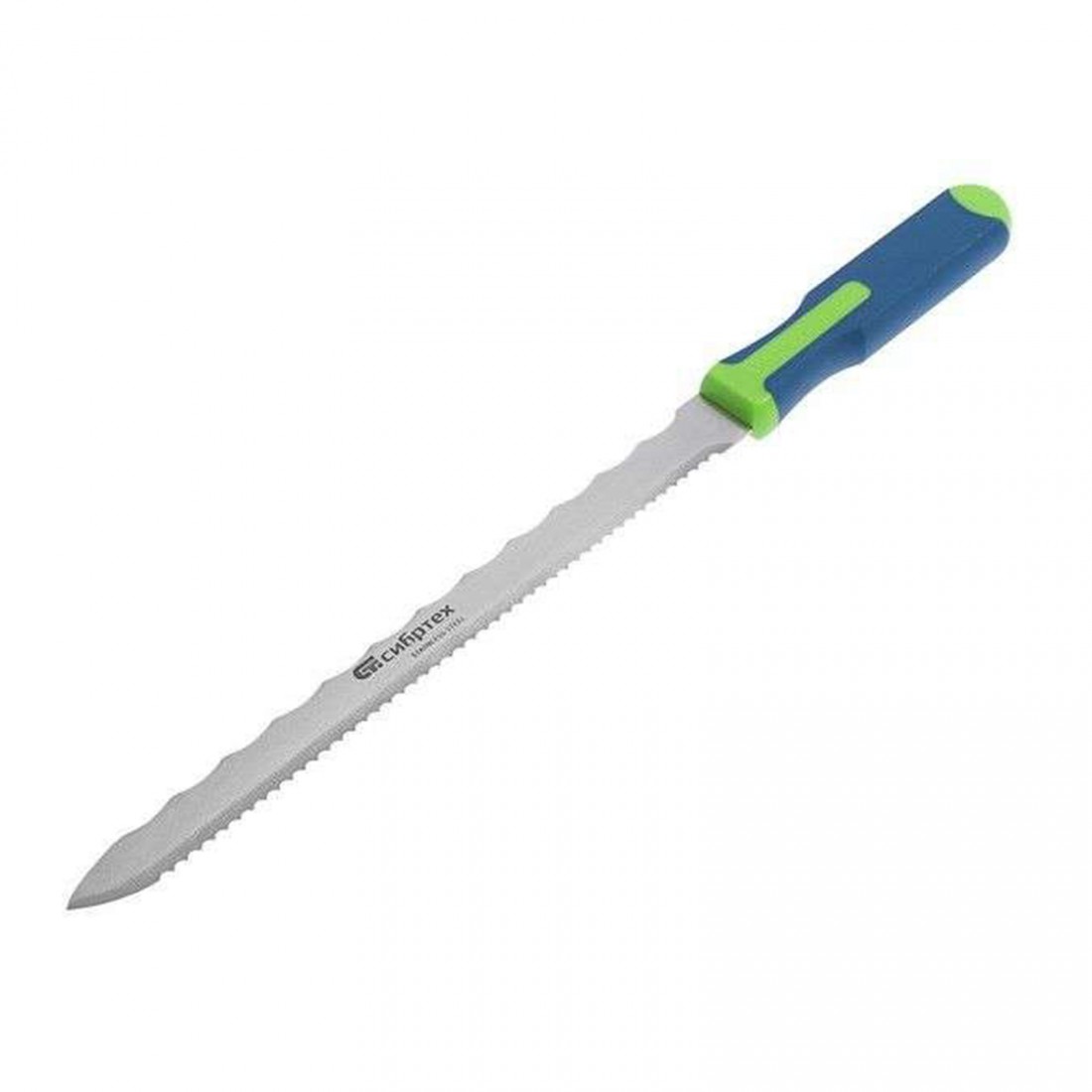 Нож для резки теплоизоляционных панелей Сибртех 2-стороннее лезвие 280х35 мм, шт купить в Сургуте по оптовой цене в интернет магазине СтройПлатформа. Нож Сибртех 79027 общей длиной 420 мм, с обрезиненной рукояткой и 2-сторонним лезвием длиной 280 мм, используется для резки теплоизоляционных панелей. Полотно имеет две режущих кромки, что позволяет выбрать оптимальную сторону в зависимости от типа материала. А благодаря длине 280 мм лезвие легко справляется с подрезкой длинных и толстых панелей.