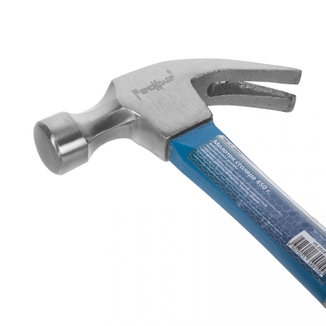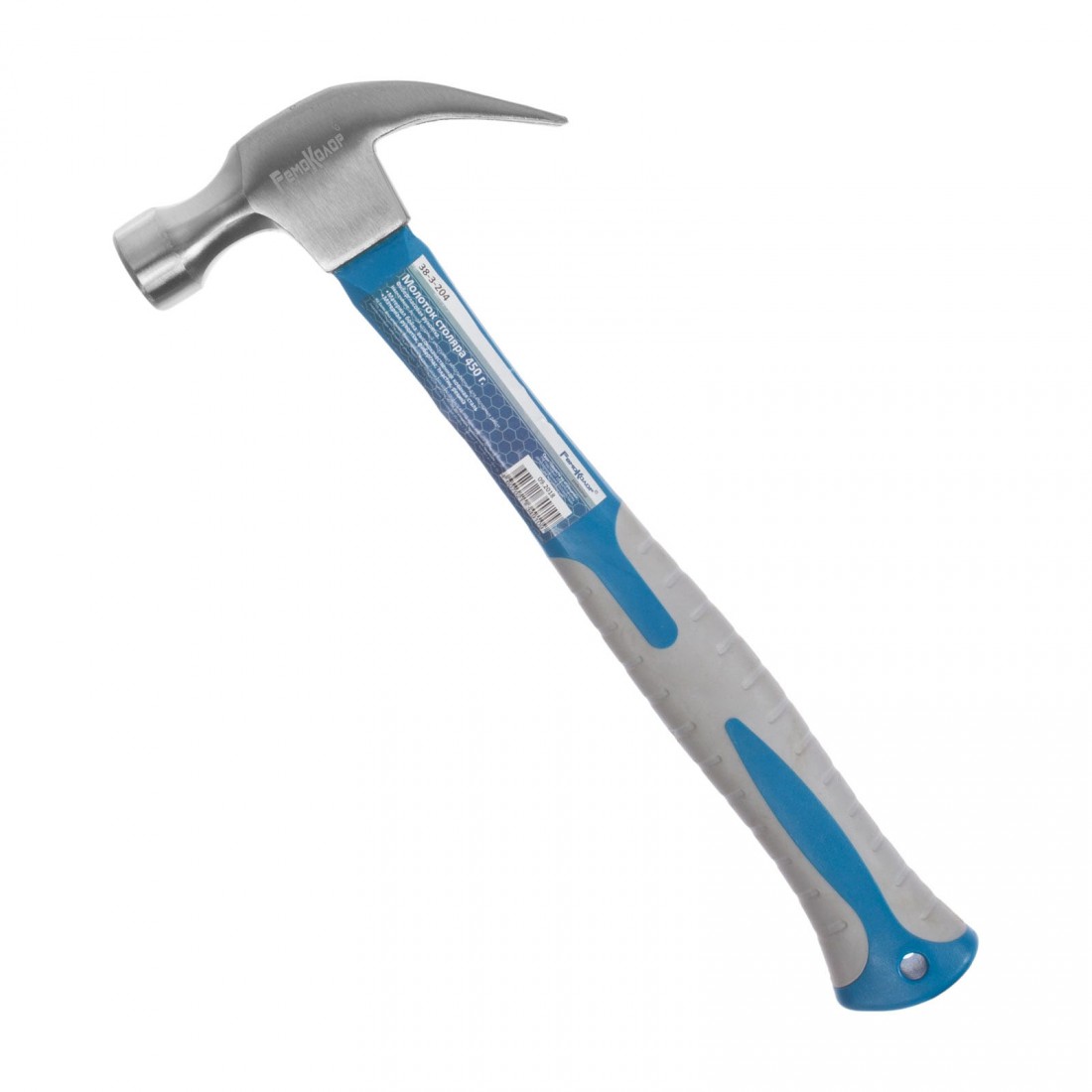 Молоток столярный 450 г, фиберглассовая рукоятка, РемоКолор, шт купить в Сургуте по оптовой цене в интернет магазине СтройПлатформа. Молоток столяра РемоКолор весом 450 г предназначен для забивания и извлечения гвоздей, а также для обработки металлических деталей. Изготовлен из инструментальной стали с закалкой ударных частей до 40-45 HRC, что обеспечивает высокую прочность бойка и носка. Ударная часть молотка состоит из плоского бойка и изогнутого клиновидного носка с прорезью для легкого выдергивания гвоздей. Фиберглассовая рукоятка с пластиковым корпусом и термопластичными вставками оснащена стержнем из стекловолокна, что повышает прочность, снижает вибрацию и обеспечивает комфорт при работе.
