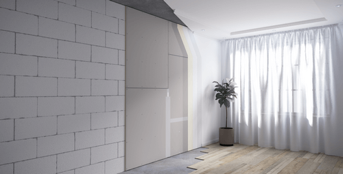 Простая в монтаже и отделке система, которая не требует возведения каркаса, а монтируется непосредственно на основание при помощи саморезов. Эффективно работает при облицовке стен толщиной до 100 мм из газобетонных блоков или ПГП (пазогребневых плит), максимально сохраняя полезную площадь. Подходит для помещений с обычным уровнем бытового шума. Улучшает показатель изоляции от воздушного шума базовой стены на 15-20%