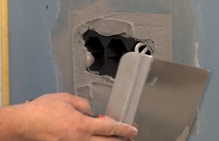 Шпатлевка поверхности и установка розеточного механизма.