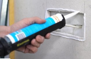 После монтажа финишного слоя вырезается отверстие под лицевую часть подрозетника.