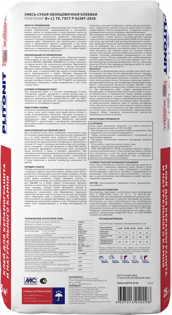 Клей Plitonit B+ С1ТЕ для плитки из камня, керамогранита, керамики 25 кг, шт купить в Сургуте по оптовой цене в интернет магазине СтройПлатформа.