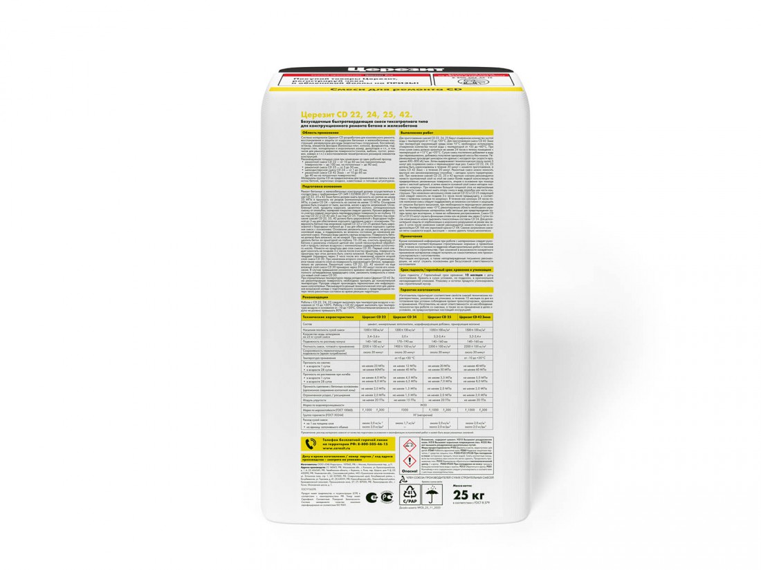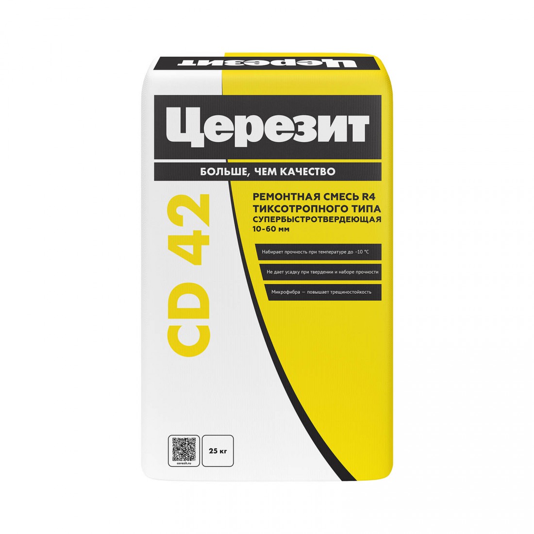 Ремонтная смесь для бетона Церезит CD 42 зимняя тиксотропного типа безусадочная 10-60 мм 25 кг, 48 шт/поддон купить в Сургуте по оптовой цене в интернет магазине СтройПлатформа. Зимняя ремонтная смесь тиксотропного типа CD 42 предназначена для конструкционного ремонта и восстановления бетонных и железобетонных конструкций при нанесении за один проход слоем толщиной: