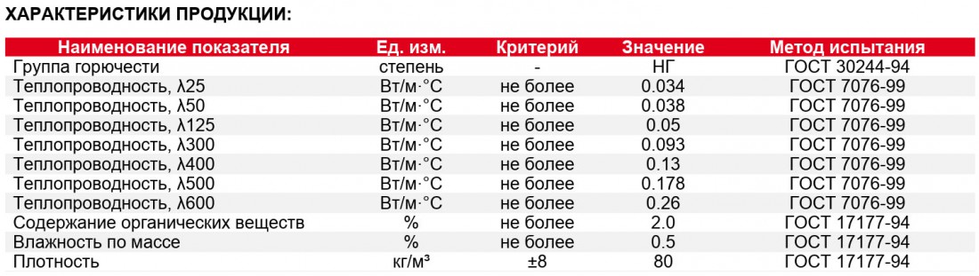 Плотность, кг/м3: | 80 кг/м3 |