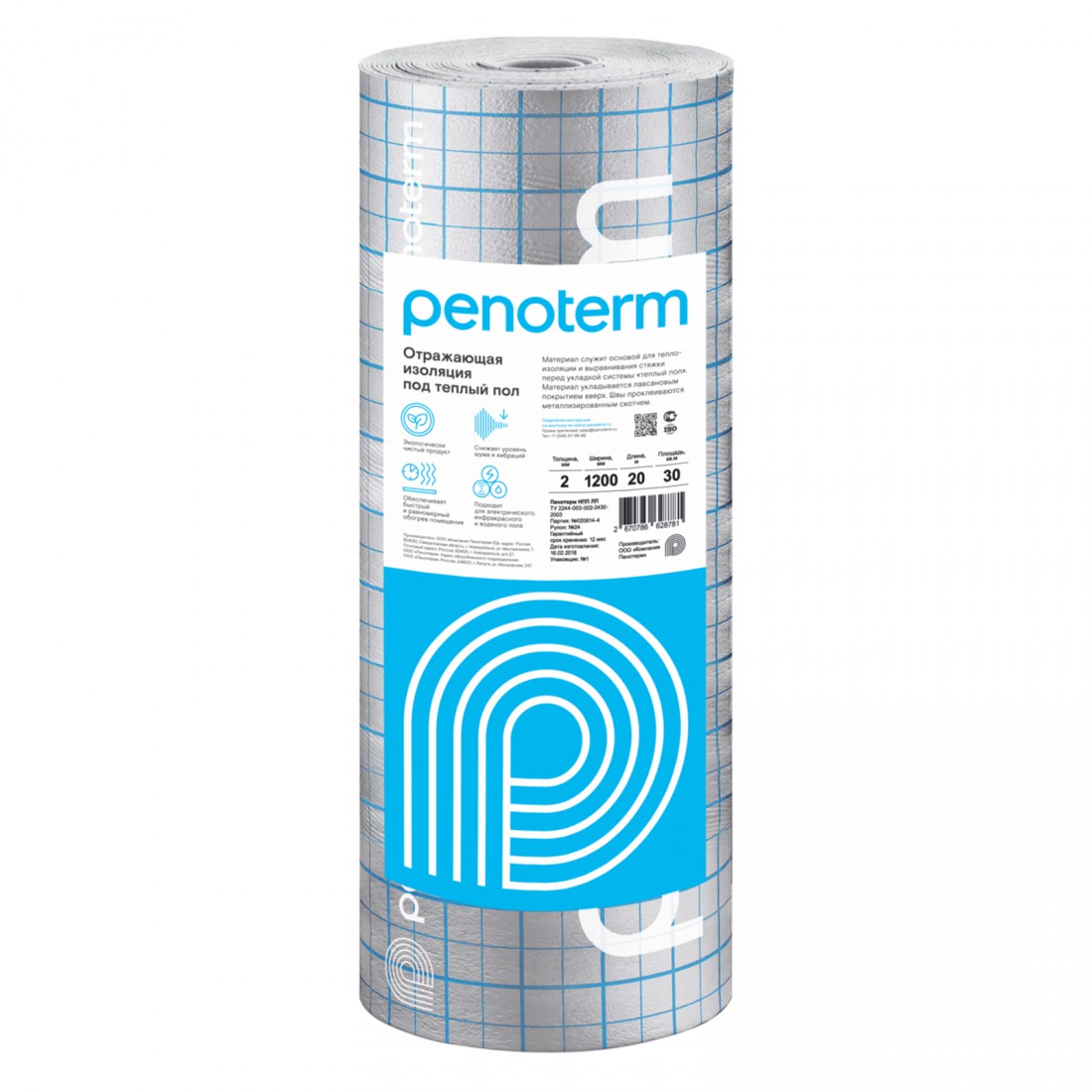 Отражающая изоляция Пенотерм НПП ЛП для теплого пола 3 мм 1,2х25 м, 30 м2/рул купить в Сургуте по оптовой цене в интернет магазине СтройПлатформа. Рулонный материал из вспененного полипропилена, ламинированный металлизированной лавсановой пленкой. Сочетает в себе свойства двух продуктов: отражающей подложки для системы «теплый пол» и виброшумоизоляции в системе «плавающий пол».