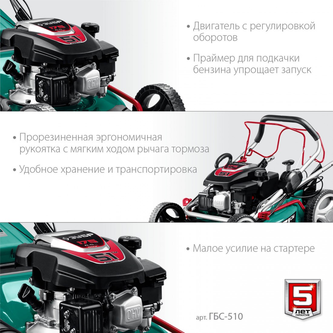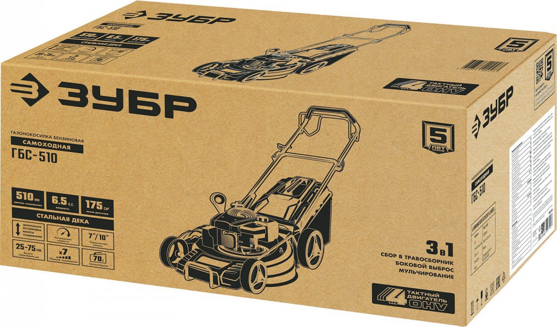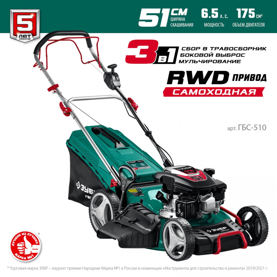 Газонокосилка бензиновая Зубр самоходная 6,5 л.с. ГБС-510 купить в Сургуте по оптовой цене в интернет магазине СтройПлатформа.