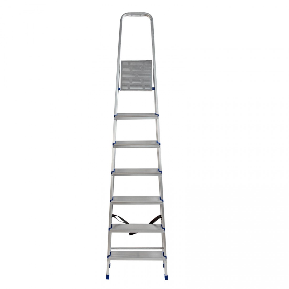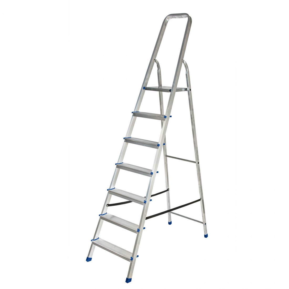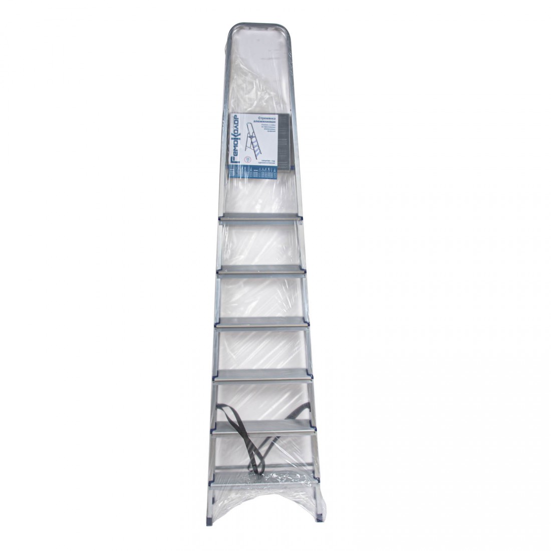 Стремянка алюминиевая, 7 ступеней, шт купить в Сургуте по оптовой цене в интернет магазине СтройПлатформа. Стремянка алюминиевая односторонняя РемоКолор Professional, 7 ступеней - Профессиональная семиступенчатая стремянка обеспечивает максимальный комфорт при работе на высоте до 3,54 метра. Благодаря увеличенной высоте площадки 1,44 м пользователь получает просторную и удобную опору для продолжительных работ. При этом модель сохраняет все преимущества серии — легкость (4,5 кг), исключительную компактность в хранении (глубина всего 11 см) и повышенную грузоподъемность 150 кг.