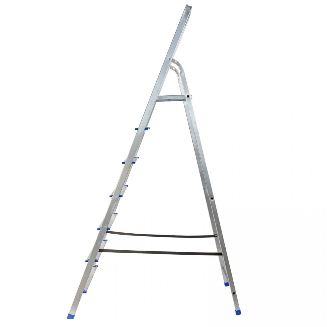 Конструкция из прессованного алюминиевого профиля гарантирует прочность и долговечность при интенсивной эксплуатации. Противоскользящие ступени и оптимальный угол наклона обеспечивают безопасный подъем и спуск. Широкая верхняя платформа позволяет удобно размещать инструменты и материалы.