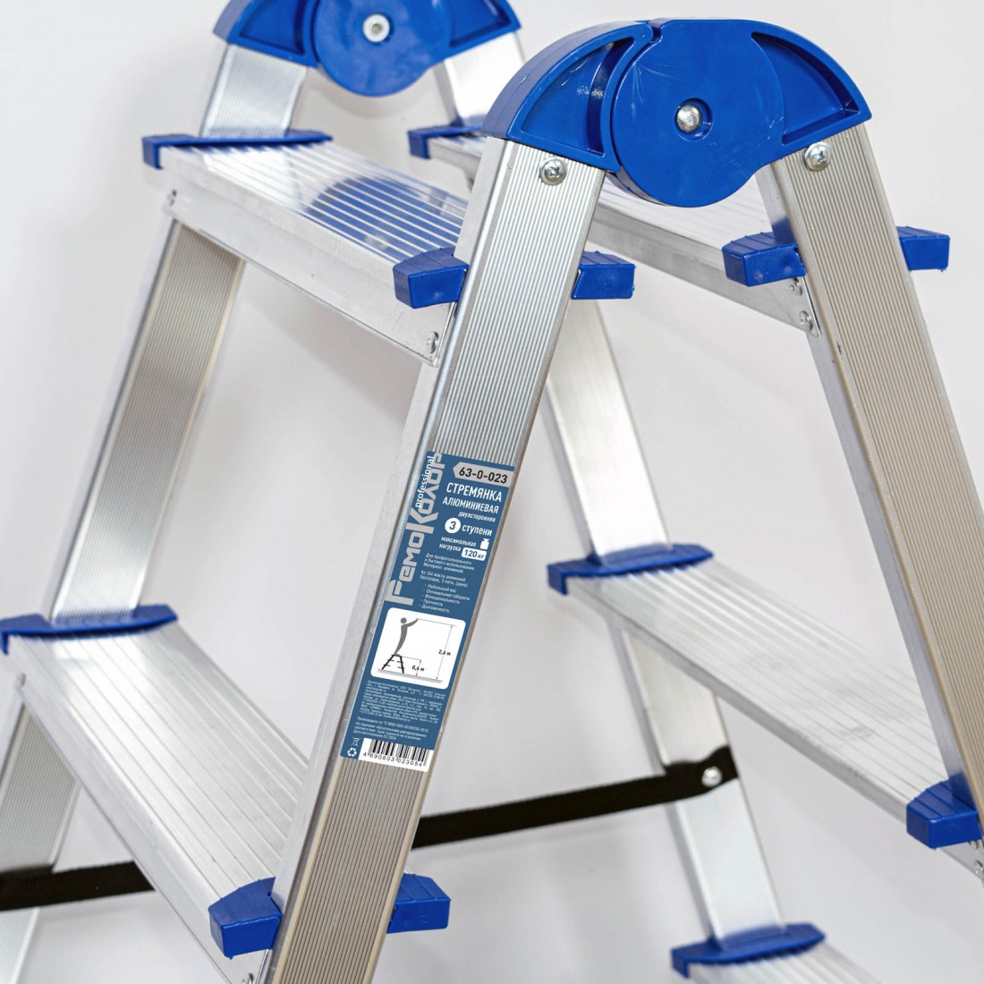 Профилированные алюминиевые ступени обеспечивают безопасное и удобное размещение ноги, а устойчивая конструкция гарантирует надежную опору даже при максимальной нагрузке 120 кг. Стремянка подходит для интенсивного использования в быту и профессиональной деятельности.