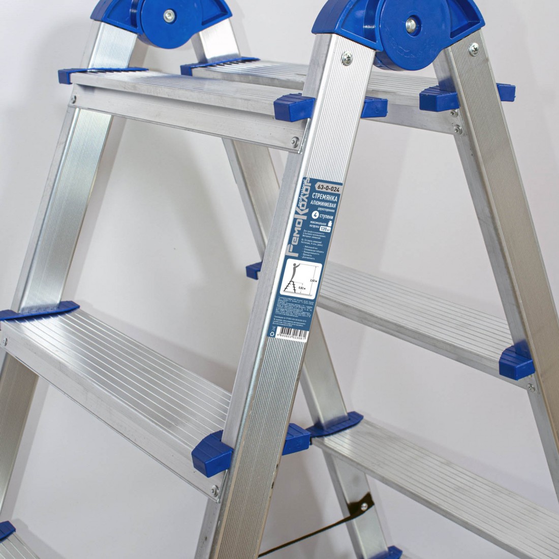 Стремянка алюминиевая двухсторонняя, 4 ступени, шт купить в Сургуте по оптовой цене в интернет магазине СтройПлатформа. Стремянка алюминиевая двухсторонняя РемоКолор Professional, 4 ступени - Профессиональная четырехступенчатая стремянка создана для комфортной и безопасной работы на увеличенной высоте. Модель сочетает высокую грузоподъемность (120 кг) с минимальным весом (3,2 кг), что обеспечивает легкость транспортировки при сохранении исключительной прочности. Двухсторонняя конструкция с удобной площадкой на высоте 0,82 м позволяет работать с разных позиций, экономя время на перестановках.
