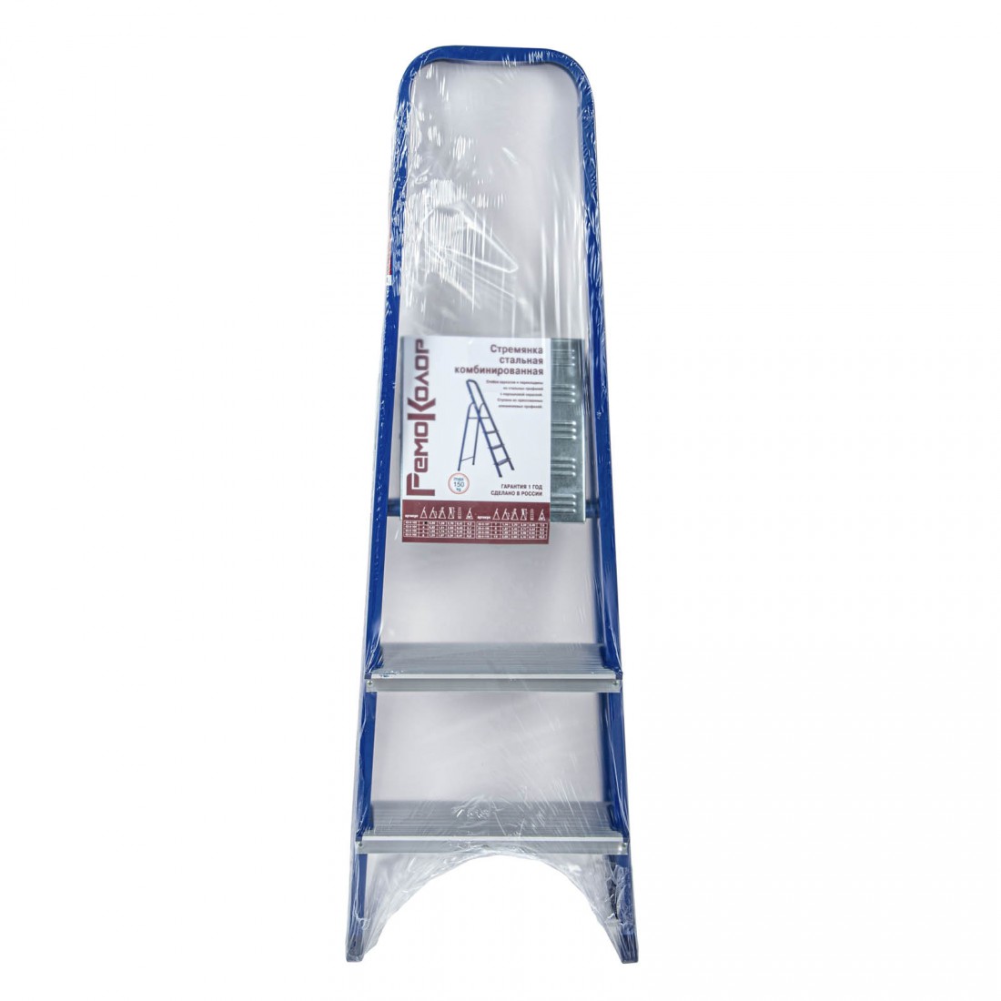 Стремянка стальная комбинированная, 3 ступени, шт купить в Сургуте по оптовой цене в интернет магазине СтройПлатформа. Стремянка стальная комбинированная РемоКолор, 3 ступени - Комбинированная трехступенчатая стремянка сочетает прочность стального каркаса с легкостью алюминиевых ступеней. Модель предназначена для интенсивной эксплуатации при максимальной нагрузке 150 кг, обеспечивая надежность и долговечность. Стальные профили с антикоррозийной порошковой окраской защищены от ржавчины, а прессованные алюминиевые ступени с противоскользящим покрытием гарантируют безопасное использование.