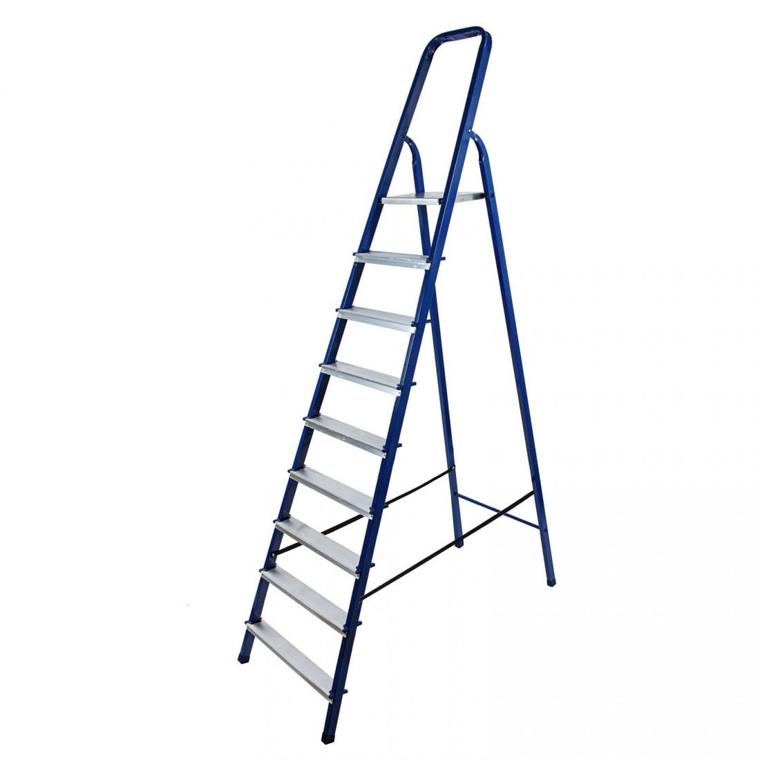 Стремянка стальная комбинированная, 9 ступеней, шт купить в Сургуте по оптовой цене в интернет магазине СтройПлатформа. Стремянка стальная комбинированная РемоКолор, 9 ступеней - Девятиступенчатая стремянка — профессиональное решение для работ на высоте до 3,98 метра. Усиленный стальной каркас с антикоррозийной порошковой окраской и прессованные алюминиевые ступени обеспечивают безопасность при максимальной нагрузке 150 кг.