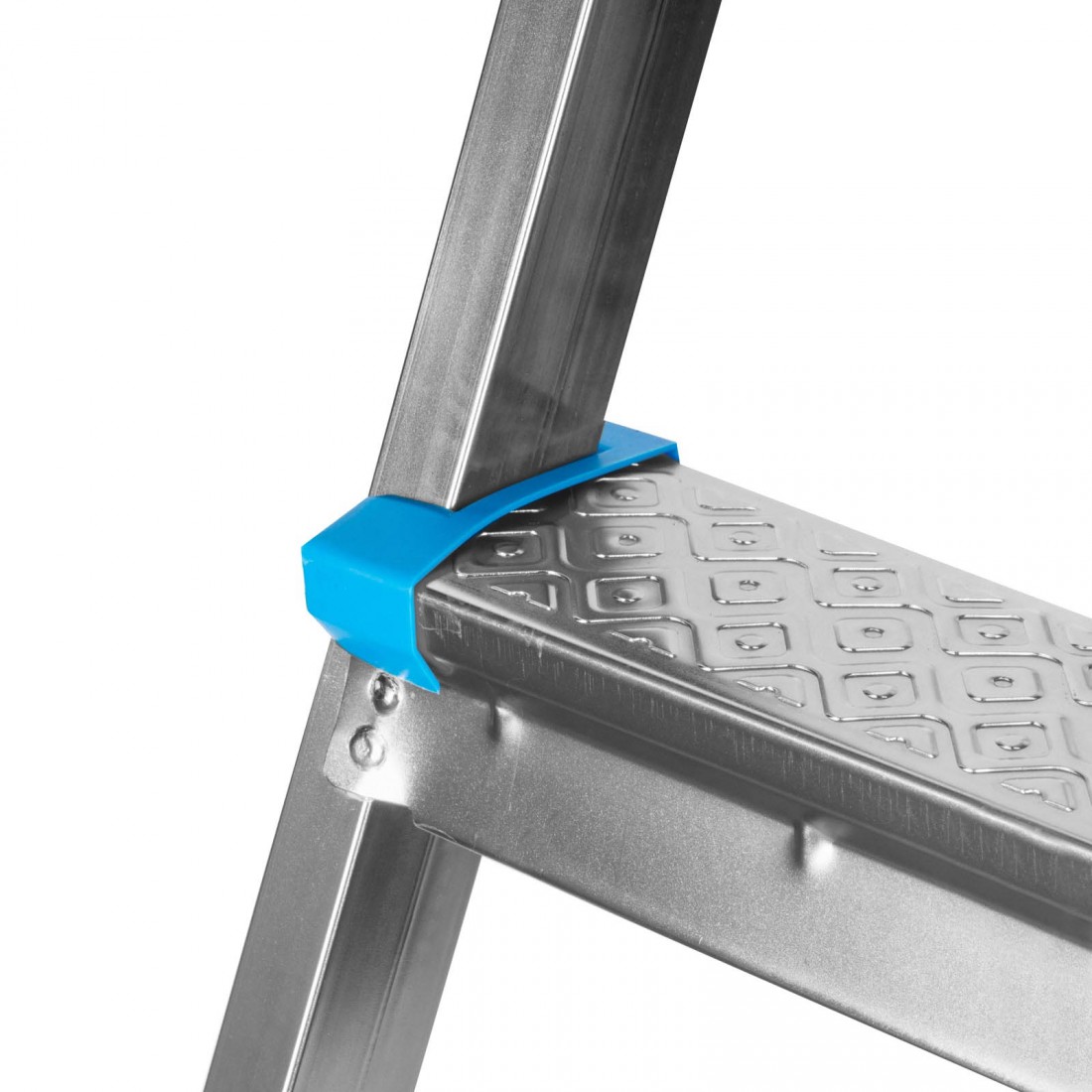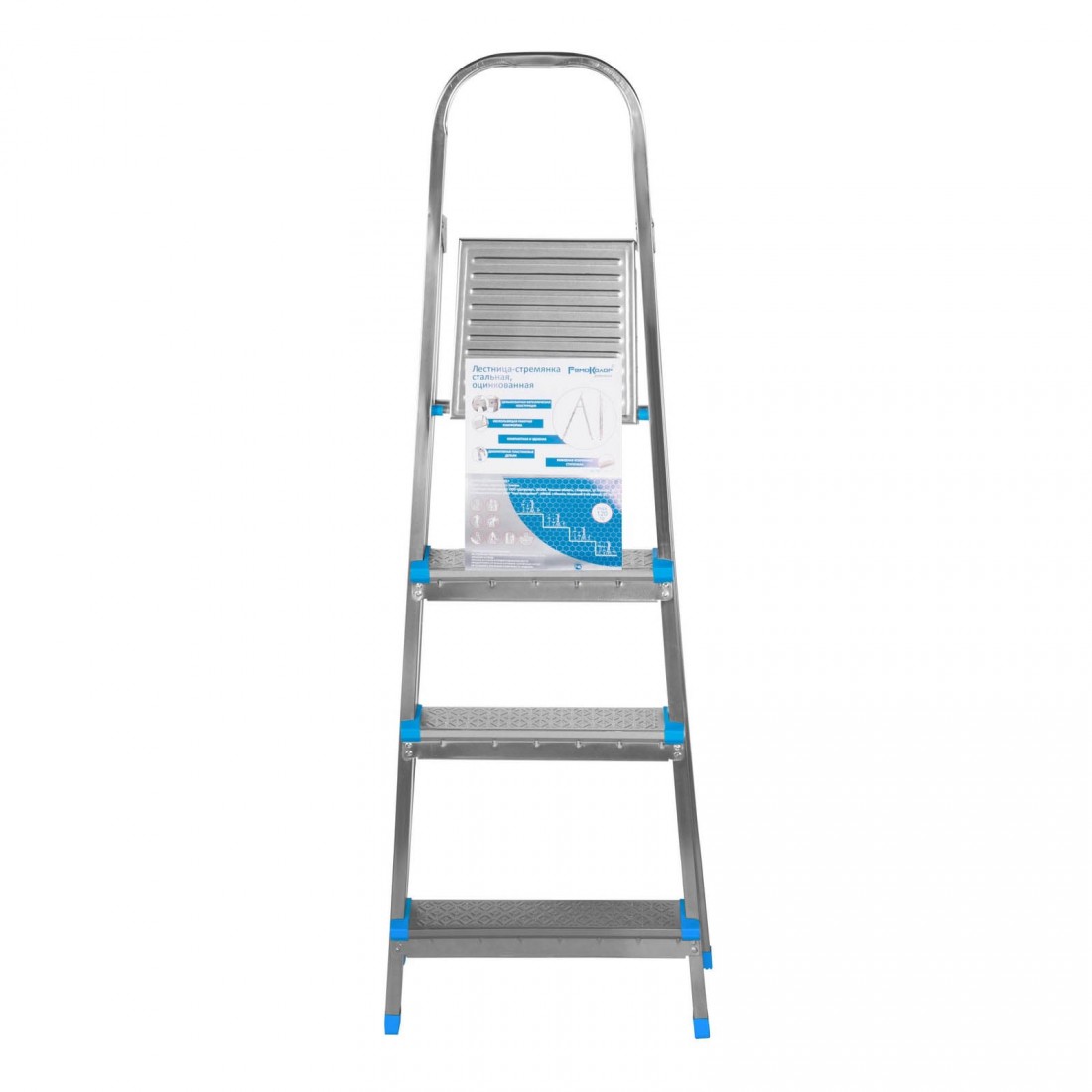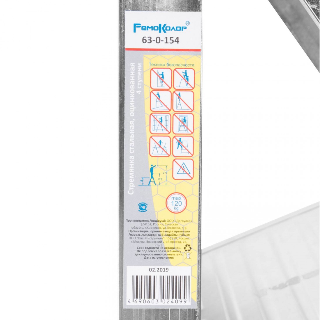 Стремянка стальная, оцинкованная, 4 ступени, шт купить в Сургуте по оптовой цене в интернет магазине СтройПлатформа. Стремянка стальная оцинкованная РемоКолор, 4 ступени - Надежная четырехступенчатая стремянка из оцинкованной стали предназначена для комфортной работы на высоте до 2,77 метра. Модель сочетает повышенную рабочую высоту с исключительной коррозионной стойкостью, что делает ее идеальным решением для помещений с повышенной влажностью. При весе 4,49 кг стремянка сохраняет легкость транспортировки, сохраняя при этом прочность конструкции и способность выдерживать нагрузку до 120 кг.