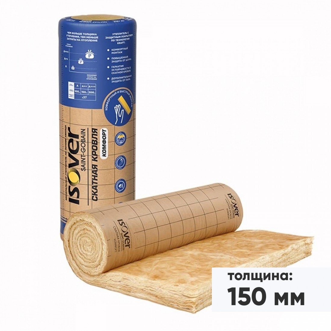 Минеральная вата Isover Скатная Кровля Комфорт 4000х1220х150 мм, 1 шт/упак купить в Сургуте по оптовой цене в интернет магазине СтройПлатформа. Утеплитель ISOVER Скатная Кровля Комфорт — это инновационное решение для тепло- и шумоизоляции скатных кровель, чердаков и утеплённых мансард, которое сочетает в себе утеплитель и пароизоляцию в одном материале.