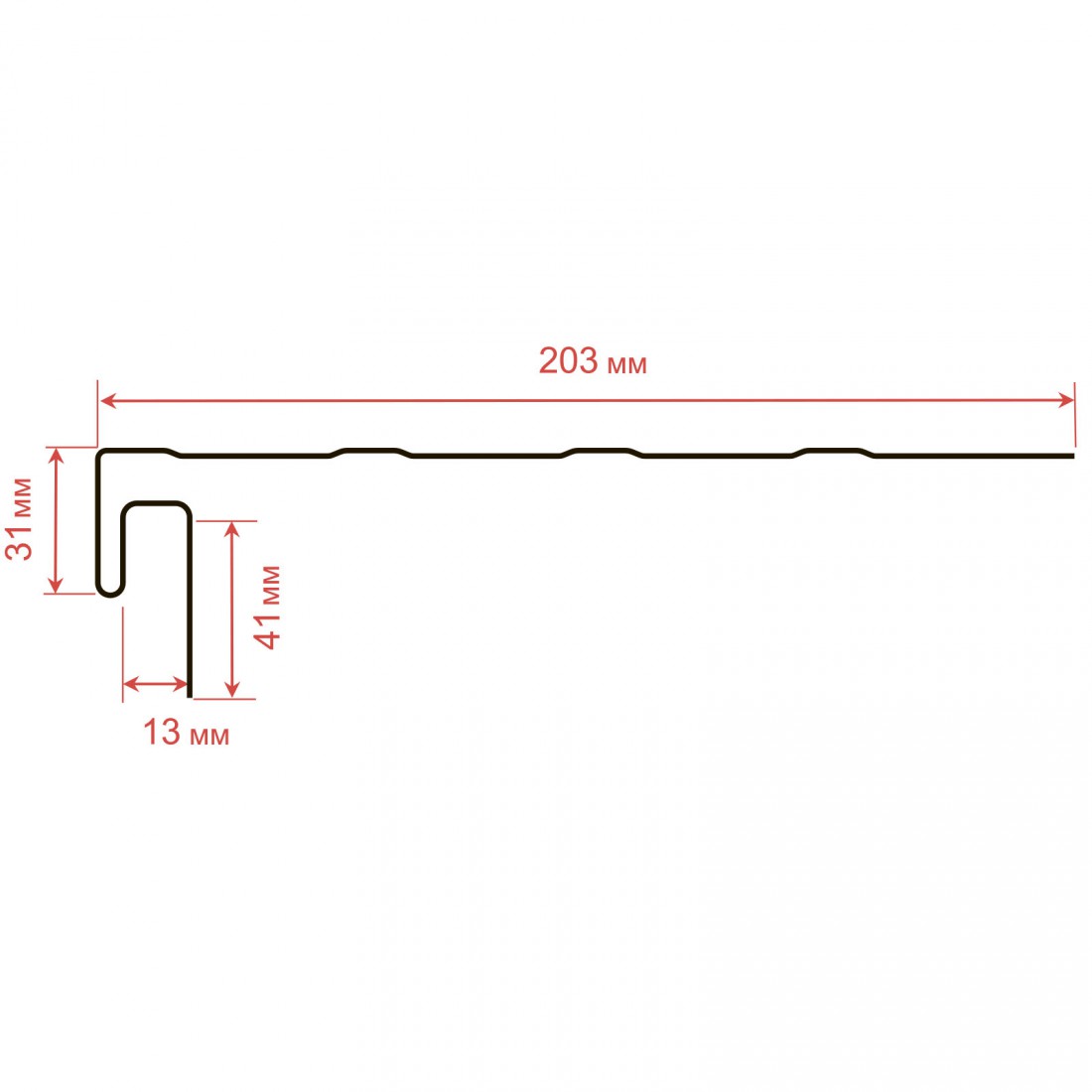 Крепление софитов: Профиль служит для надежного крепления софитов на карнизных и фронтонных свесах кровли, обеспечивая долговечность конструкции и защищая элементы кровли от воздействия внешней среды.