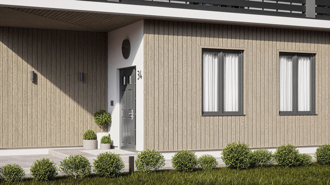 Аутентичный внешний вид: Благодаря уникальной технологии окраски, сайдинг ТЕХНОНИКОЛЬ Фактур точно воспроизводит текстуру и цветовую гамму натурального дерева. Каждая панель имеет свой уникальный рисунок и глубину, создавая неповторимый внешний вид.
