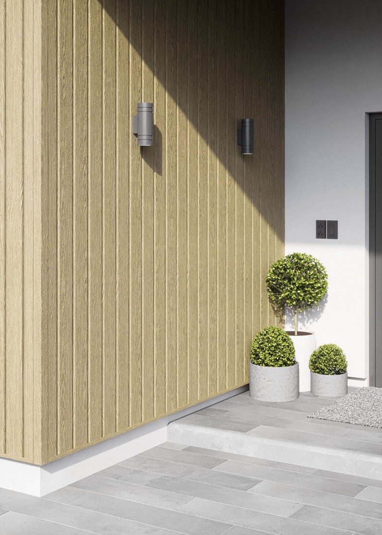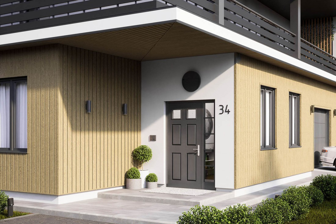 Аутентичный внешний вид: Благодаря уникальной технологии окраски, сайдинг ТЕХНОНИКОЛЬ Фактур точно воспроизводит текстуру и цветовую гамму натурального дерева. Каждая панель имеет свой уникальный рисунок и глубину, создавая неповторимый внешний вид.